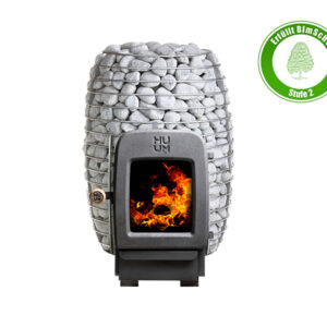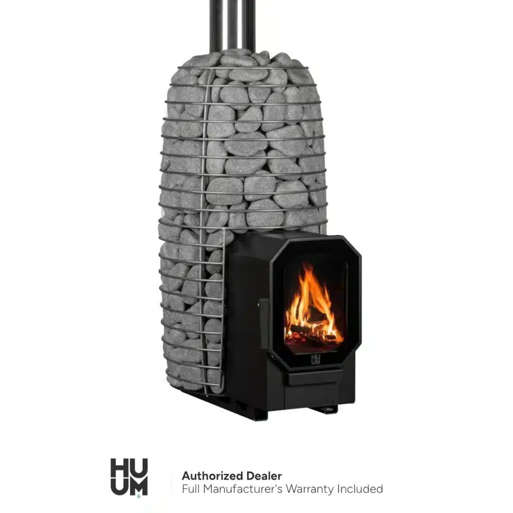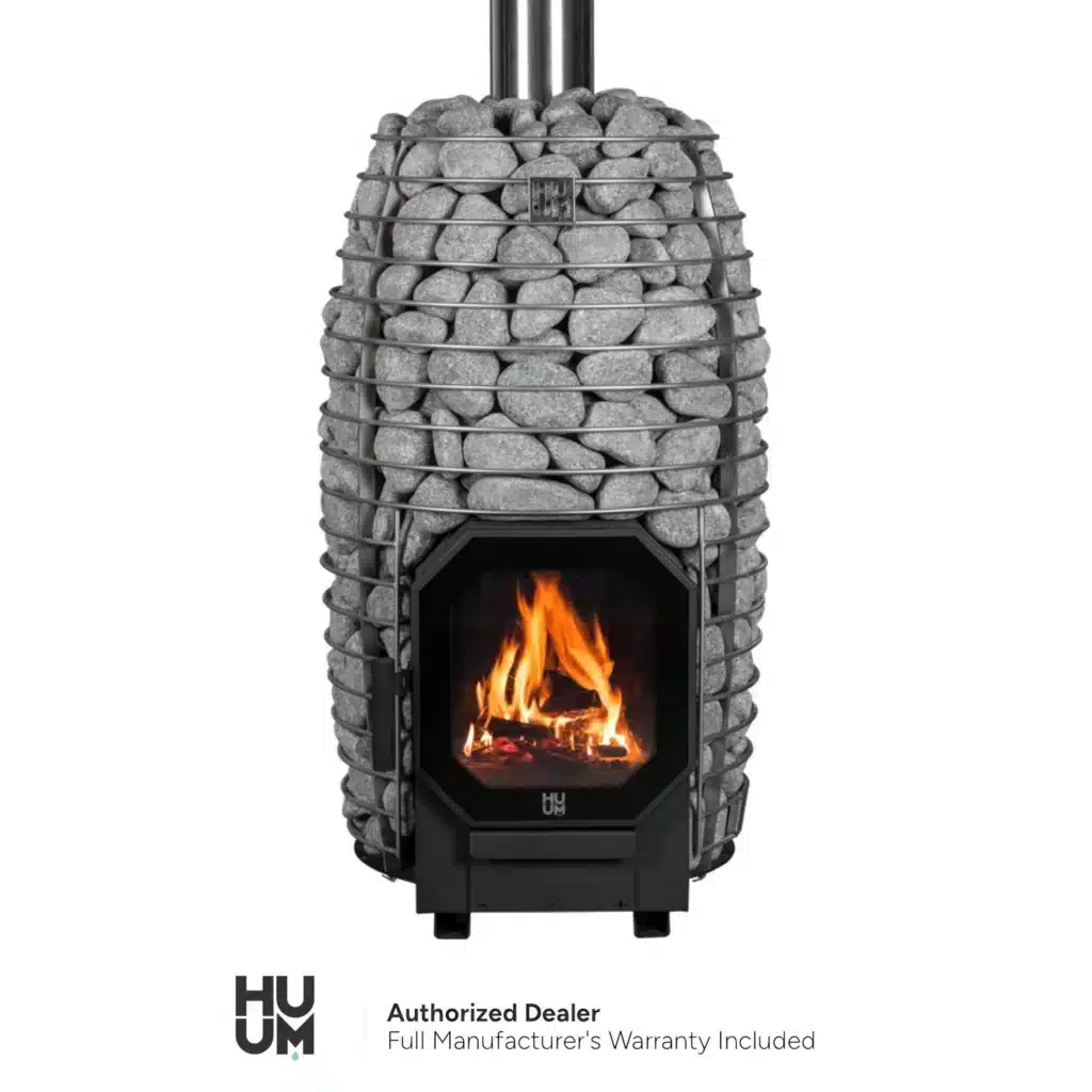 HIVE Heat wood heater ensures more economical wood usage and exceptionally clean burning due to its innovative firebox, making it a good choice for those who value an environmentally conscious mindset and appreciate the traditional sauna experience. The unique firebox design directs fresh air from above into the combustion process to create a powerful flame. This ensures complete combustion of wood and even wood gases, which would otherwise exit through the chimney in less efficient sauna stoves. This maximizes the heating value of the wood and also keeps the surrounding nature and the air we breathe clean. The heater’s durable door is made of cast iron, and the heater is treated only with natural oils. HIVE Heat wood heater meets one of the world’s strictest environmental standards for wood-burning stoves, the German BimSchV II. HIVE Wood wood heater is a solid and stylish choice if you value the simplicity of a traditional sauna or if there is no electrical connection in the steam room. Its Nordic calm design highlights the natural beauty of the stones. In essence, HIVE Wood is both efficient and durable. A large amount of heater stones ensures long-lasting and gentle steam. The flame in the firebox is powerful and burning is efficient. The flame cutter in the firebox, which is subjected to the harshest heat, is made of 5 mm thick stainless steel and is exceptionally durable. A heat exchanger can be installed under the stones for heating sauna water. The live fire and crackling of wood in the firebox create a cozy atmosphere and help you disconnect from the hustle and bustle of everyday life