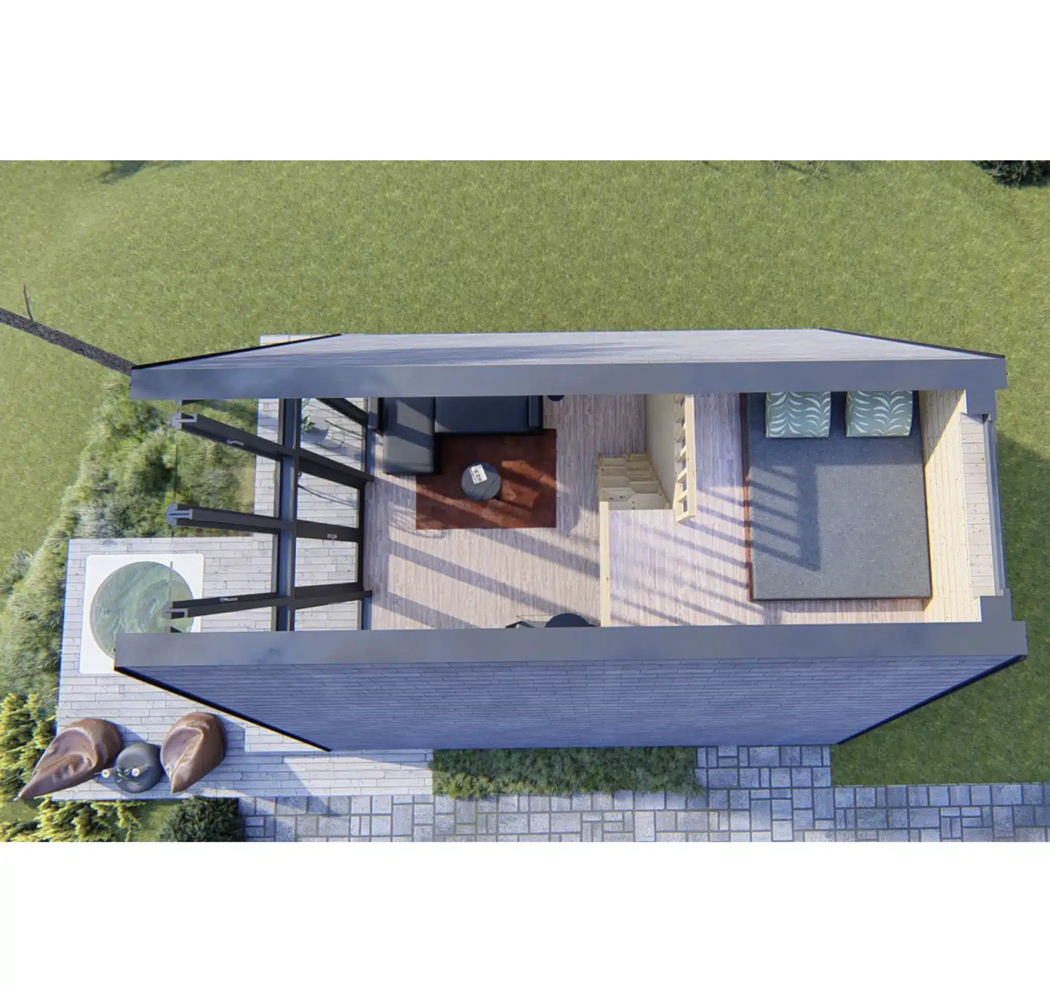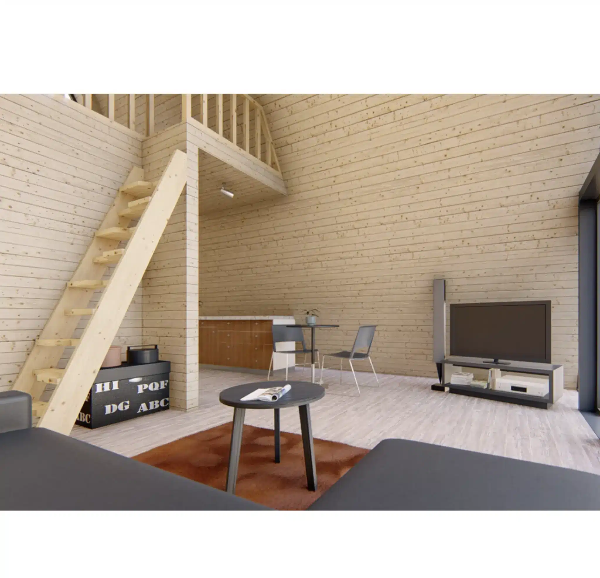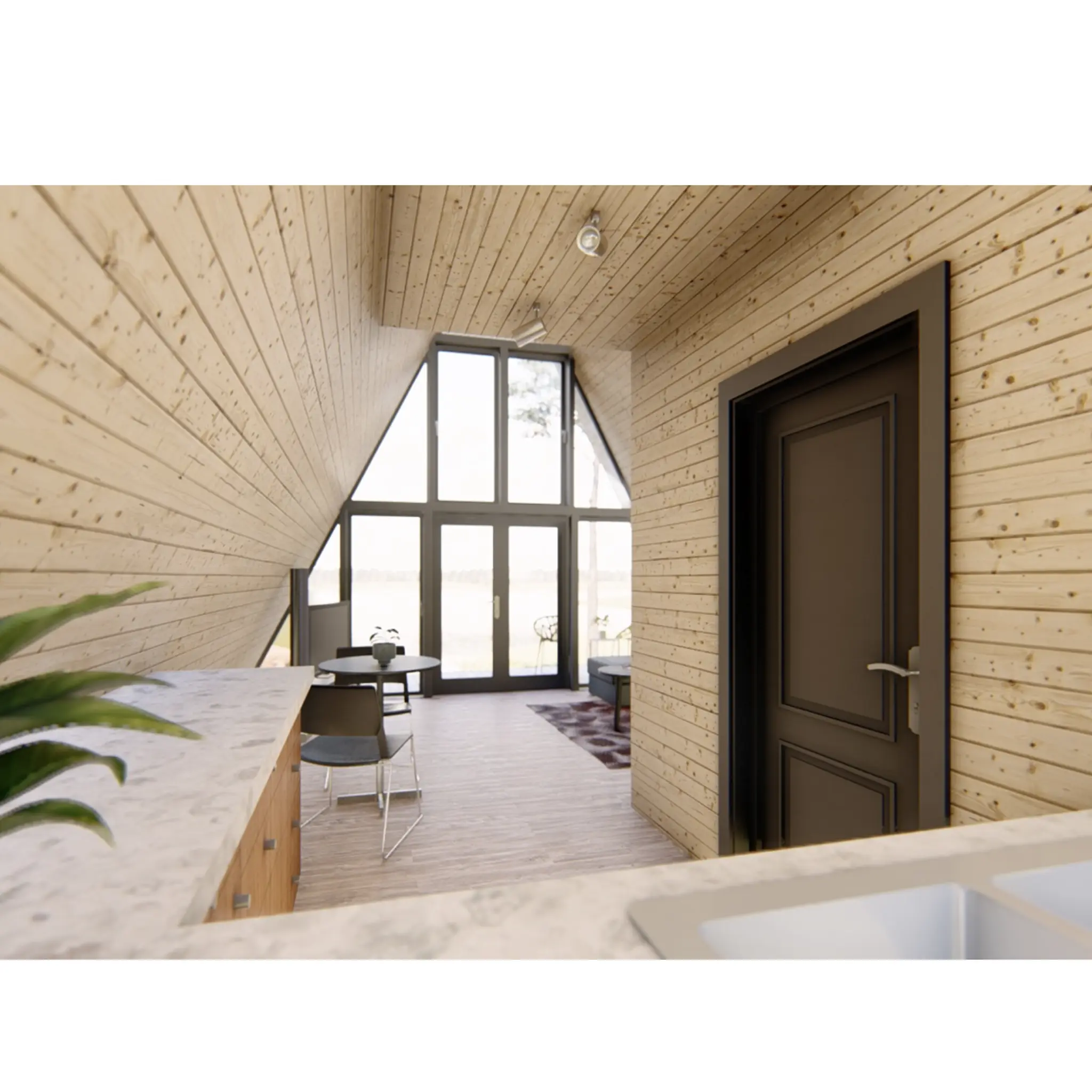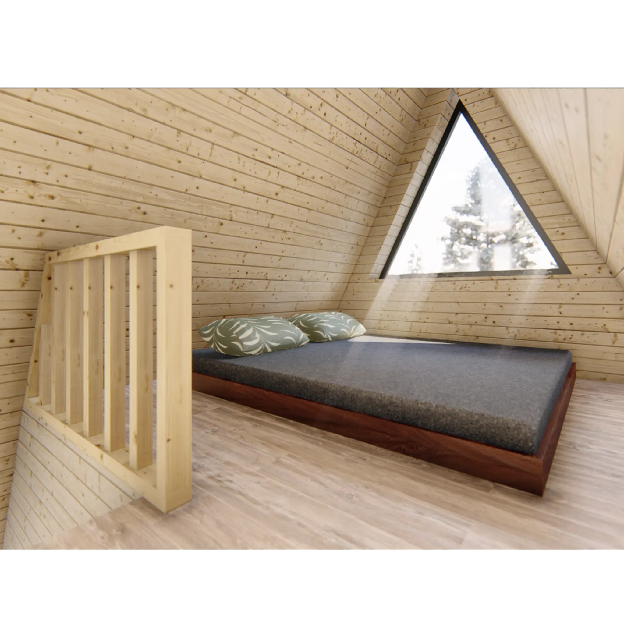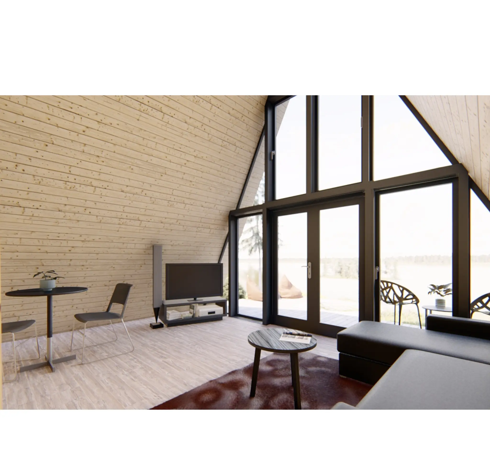 A-Frame Cabins: Kit does not include interior finish or Rockwool insulation. For this type of building, customers often have their own ideas for finishing the interior, from plaster to finish boards imitating round timber. Rockwool is not included due to the high value per cubic meters.