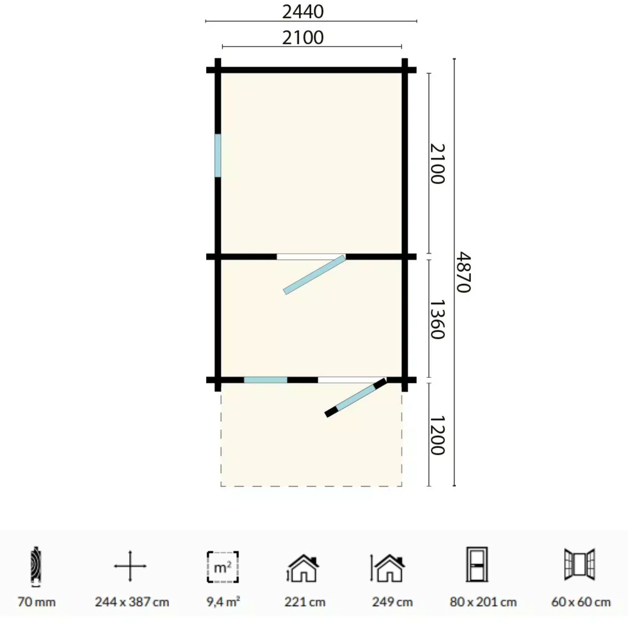 Transform your outdoor space into a luxurious wellness retreat with the Ahti M Flat sauna. Measuring 2.4 x 3.8m, this elegant sauna is designed for those who value both style and functionality. The layout includes a spacious sauna room and a smaller multifunctional room that can serve as a shower or changing area, tailored to your specific needs. Constructed from high-quality Nordic spruce, the Ahti M Flat sauna offers durability and timeless aesthetics. With its insulated roof elements, this sauna is perfect for year-round use, ensuring comfort and practicality in all seasons.