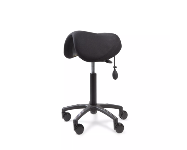 The saddle chair Aircell Soft has been designed for all users. This is made possible by the Aircell air cushion in the seat. The seat is adjustable with a pump, which removes all the strain caused by sitting and is comfortable to sit and use. The saddle chair has been found to maintain working capacity and promote health. The natural seating position can be found quickly thanks to the shapely seat. Correct seating position will help you maintain blood flow to the spine area, pumping nutrition on the discs and strengthening the back muscles. The body weight is evenly distributed, and the seat part does not press on the back thighs. The pelvic artery circulation also works better. The seat cover is made of durable fabric.