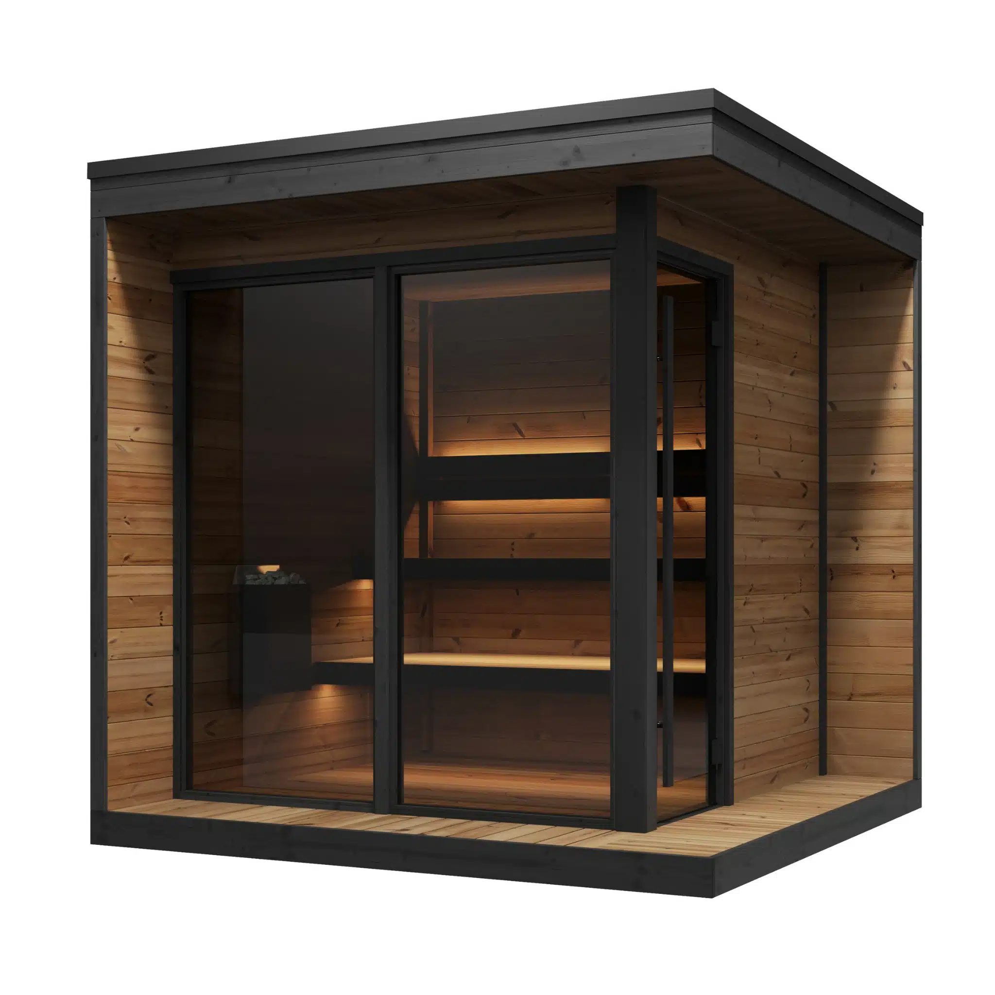 ARYA brings timeless design and authentic sauna tradition to your backyard. Crafted from durable thermowood and finished with elegant black accents, it offers a private escape into heat, silence, and renewal. Perfect for those who value calm, quality, and clean aesthetics.