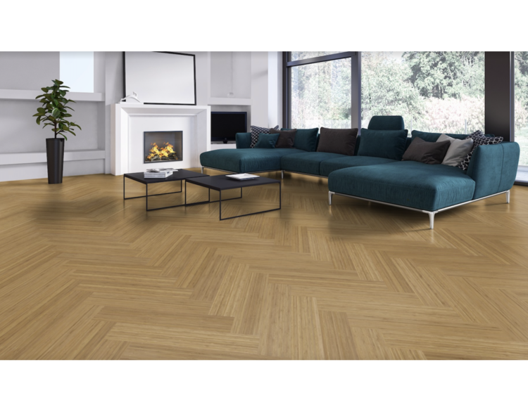 The MOSO® Bamboo Elite herringbone parquet has a warm caramel tone and is available in three styles: