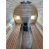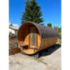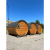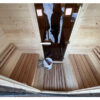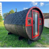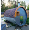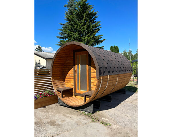 The most spacious outdoor sauna cabin having only a steam room is optimal for a big family or sauna fans and their friends. Such an outdoor sauna is delivered in both assembled and kit versions, it can be made from spruce or thermowood. This outdoor wood-burning sauna is also available with 6 or 8 kW elektro oven, in diameters of 2 m and 2.2 m. We recommend you to complement your sauna with a panorama window, decorative wooden ring and other useful accessories that will improve its look and raise our mood. Choosing this outdoor sauna, you will get excellent quality for a reasonable price.