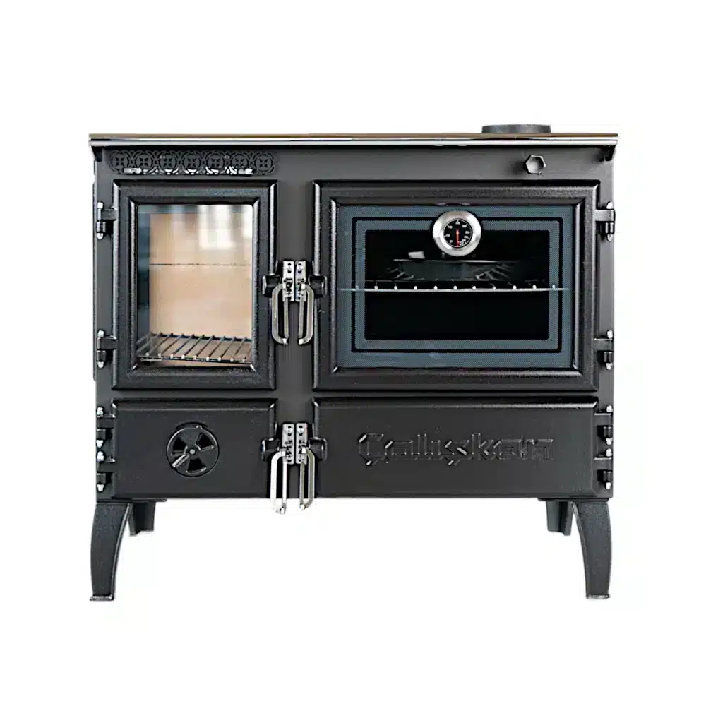 ÇALIŞKAN 214-3D is a premium wood burning stove with oven. It is glazed on 3 sides. Both the front and the sides are large glass panels that turn the 214-3D into an impressive fireplace. This model offers a wide view of the fire in landscape mode. Its air wash system keeps the glasses spotlessly clean.