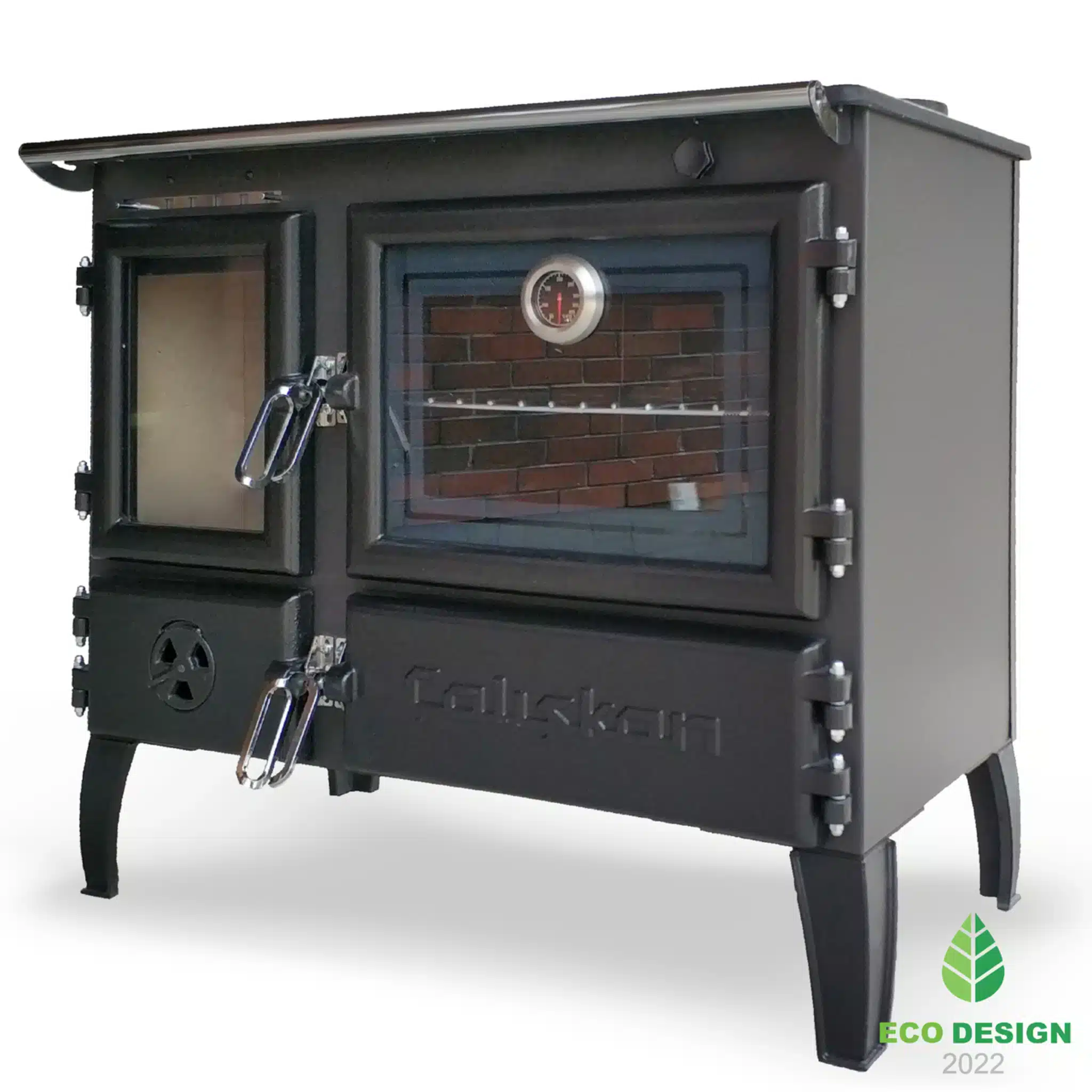 ÇALIŞKAN 214 is a multifunctional wood burning stove, it is a fantastic masterpiece in any room, it can heat your large room with its high energy efficiency, but at the same time you can ideally cook your foods in its oven with well-designed heat path. You really get the most out of every piece of wood you put in.