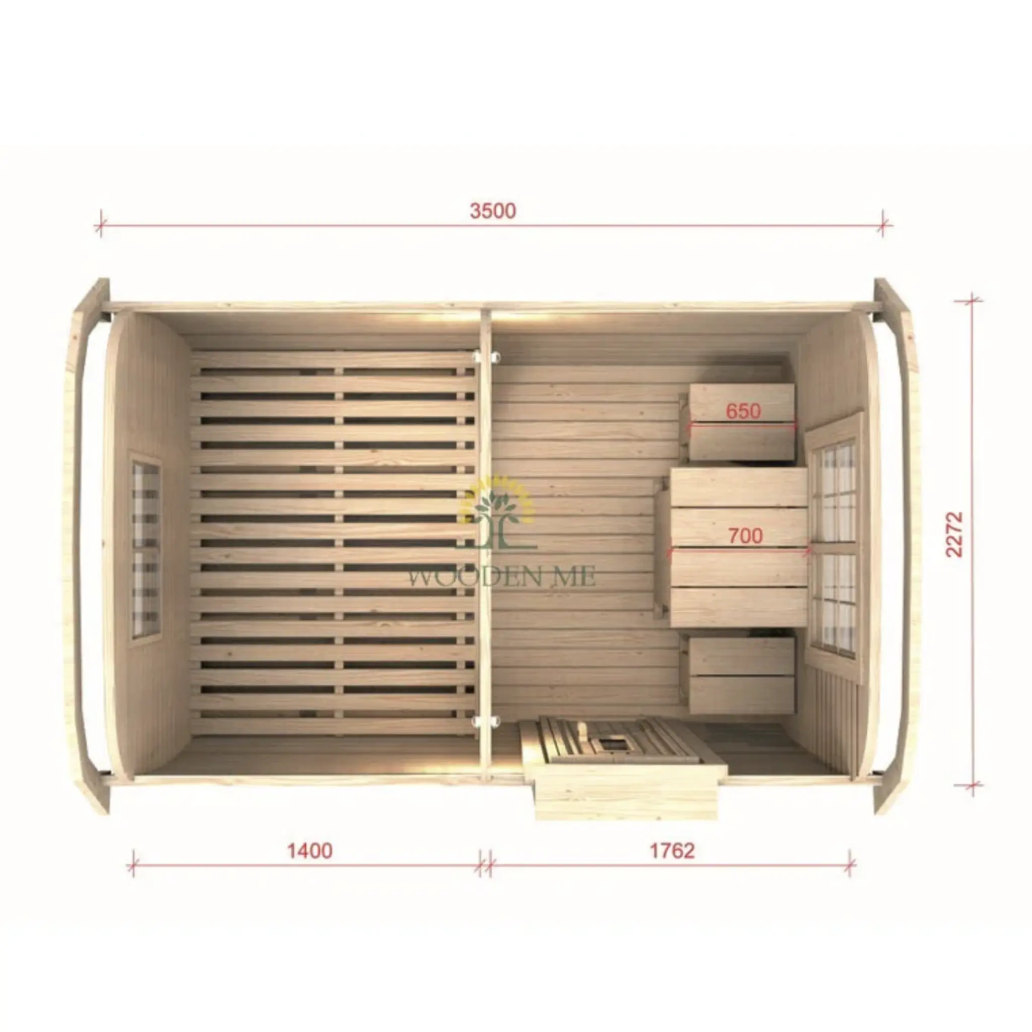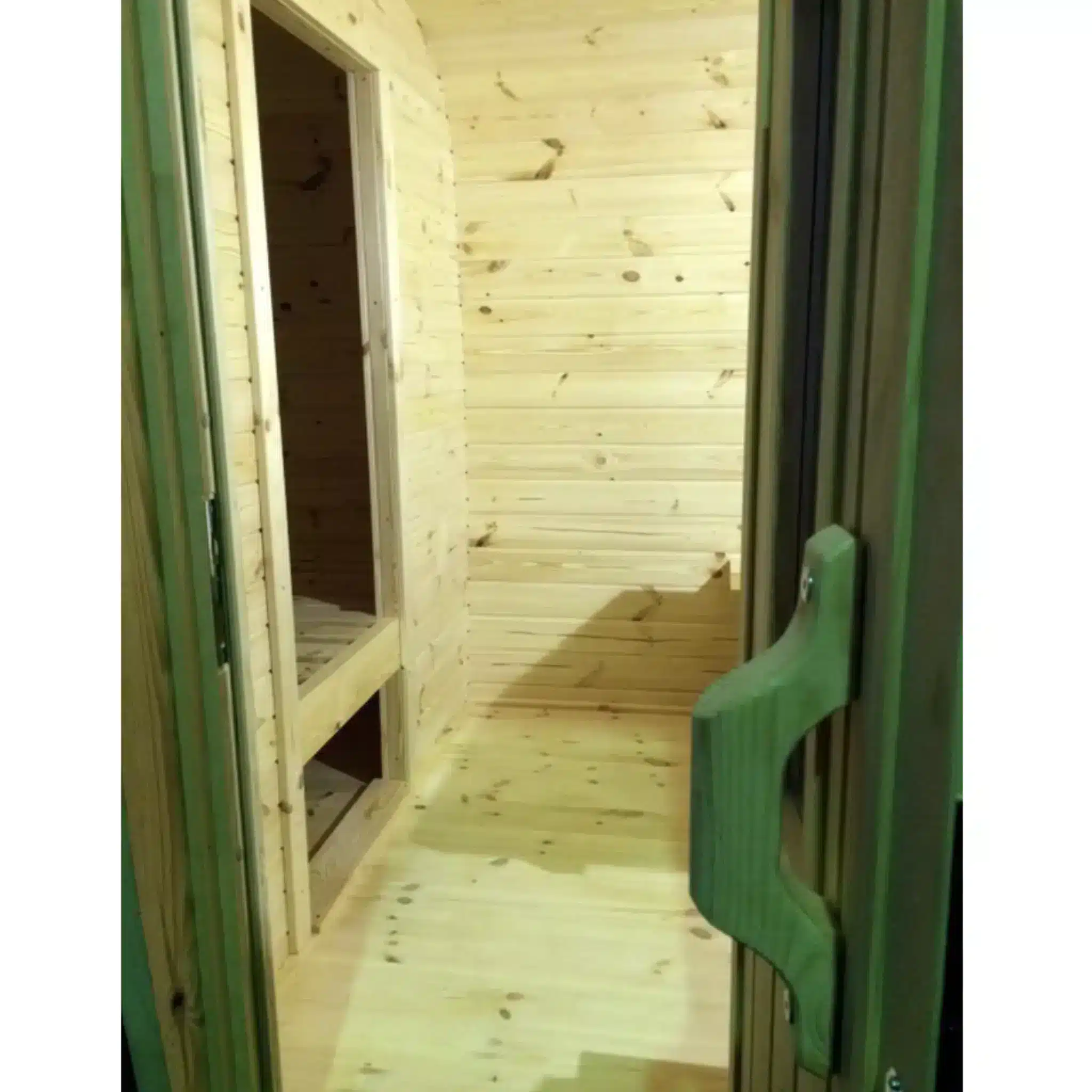 Our Camping Buses are made of the highest quality pinewood or Thermo-wood with a 46 mm wall thickness. Not only do they boast an appealing design, but they also provide additional accommodation space.