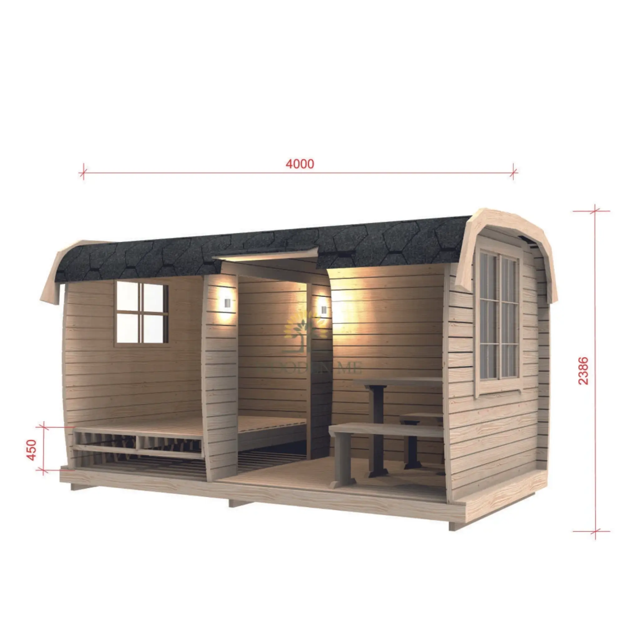 The Camping Bus 4m offers versatile accommodation for 2-4 people. The Camping Bus, with its 2.3 m width, facilitates the delivery of a fully assembled product by truck from the factory to the final destination. Customers have the option to choose between assembly or receiving it unassembled (KIT), complete with provided manuals.