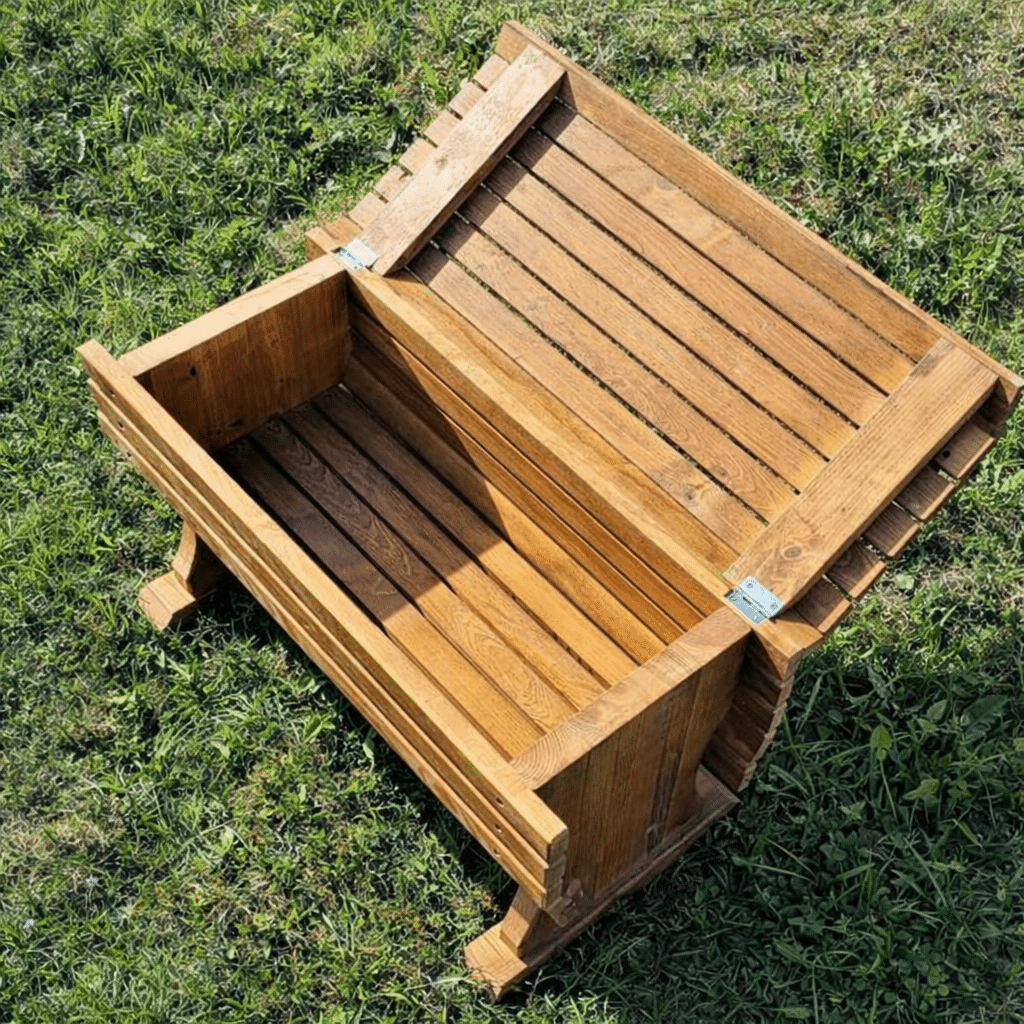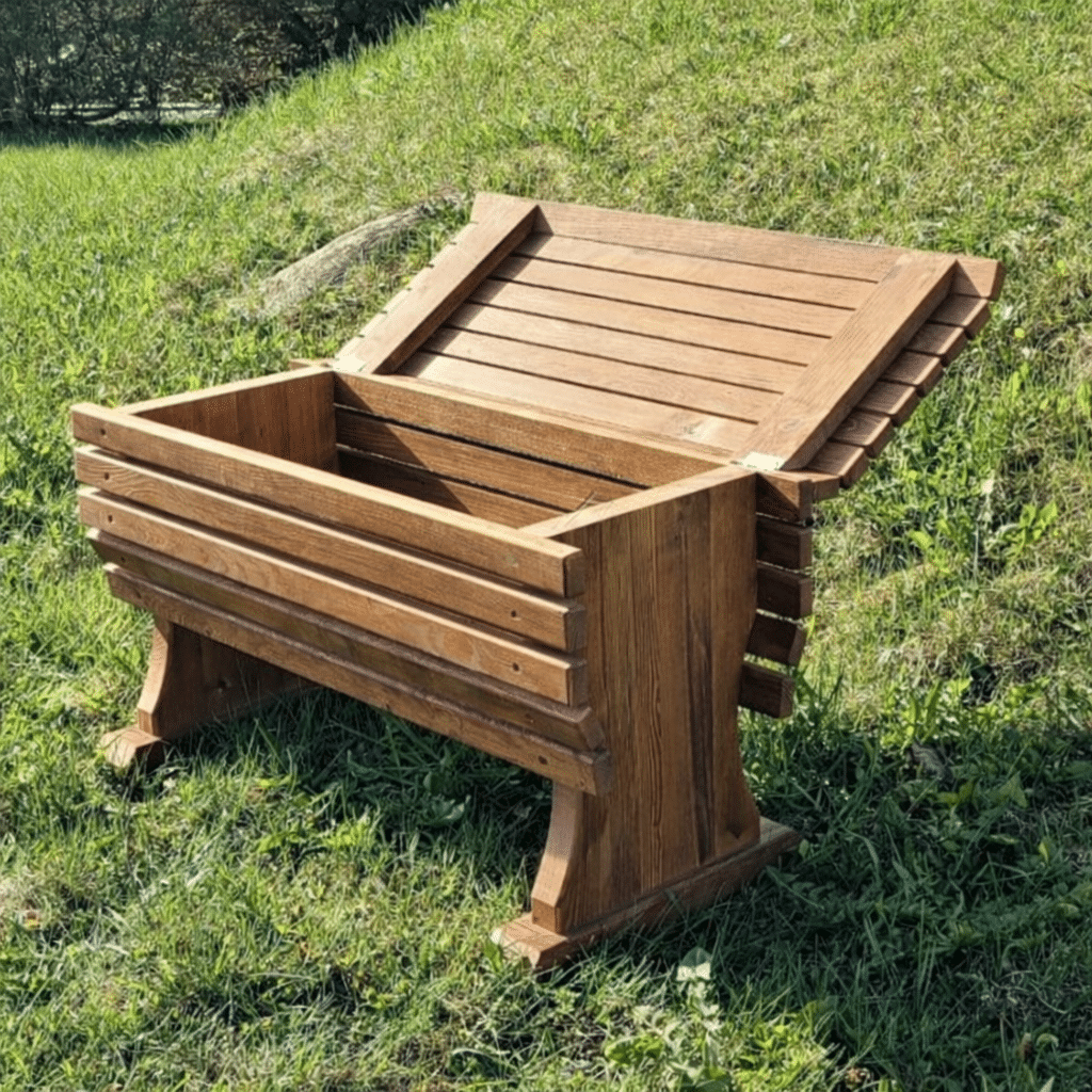 The cemetery bench is made of softwood and finished with oil.