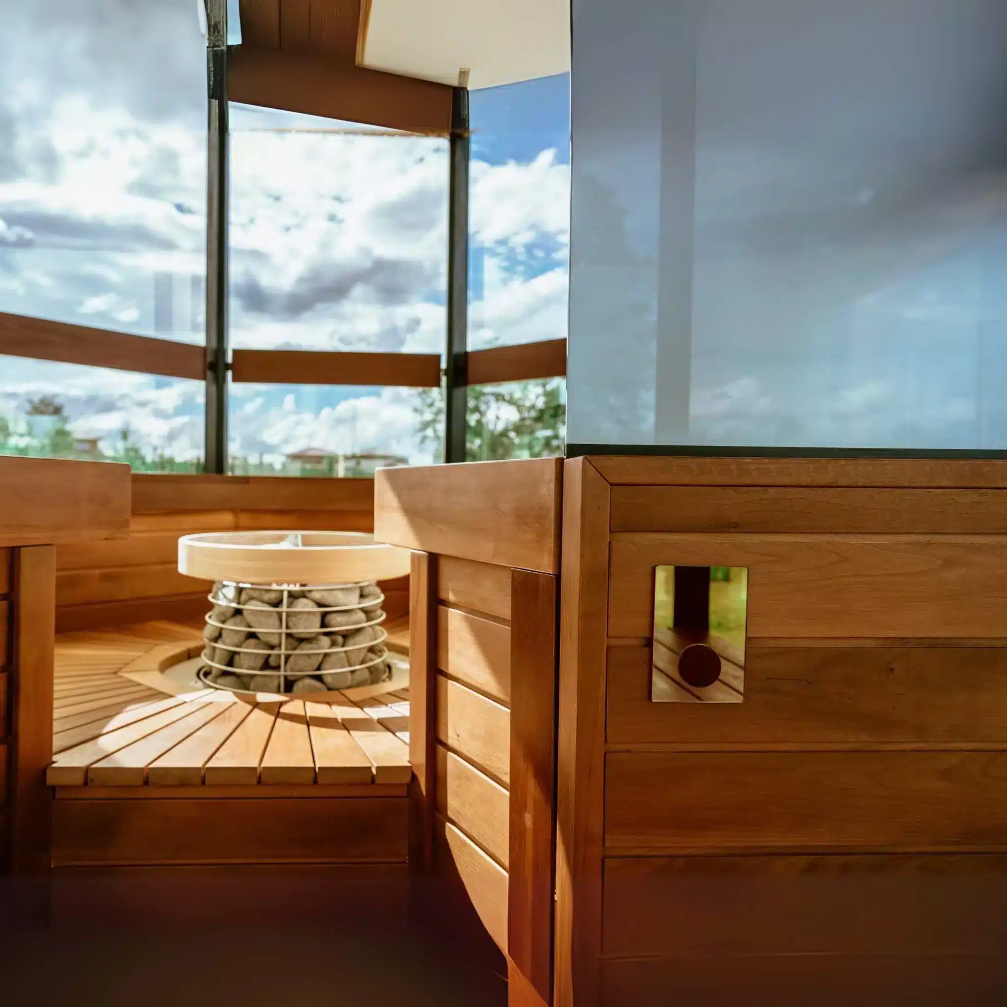 The Uku Wifi Gold control panel has several features and options that make sauna heating and going to the sauna a pleasant and safe experience. This control panel can be connected to the sauna’s lighting, ventilation and steamer, it has overheating protection and a child lock, so you don’t have to be tense and worry too much about safety on sauna day.