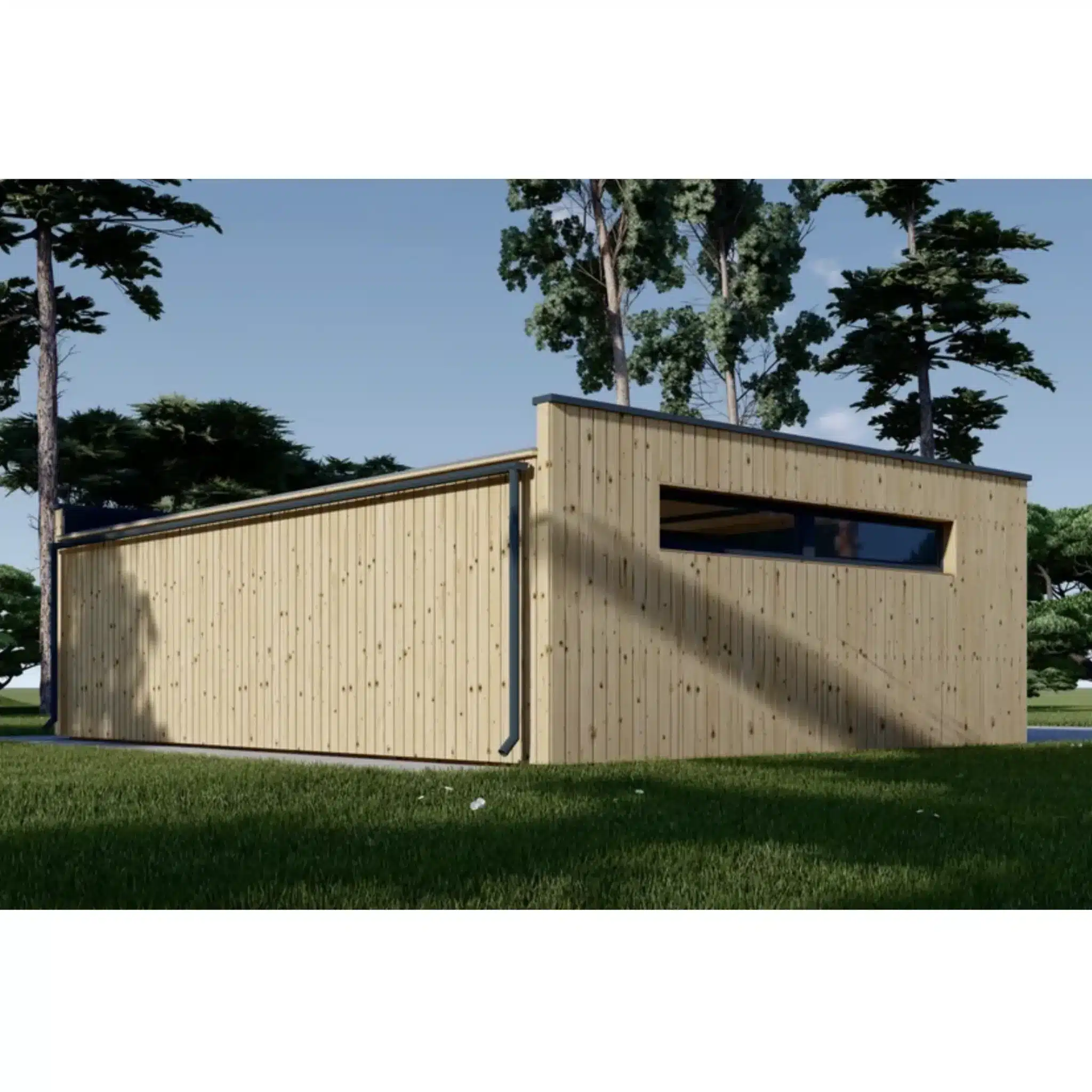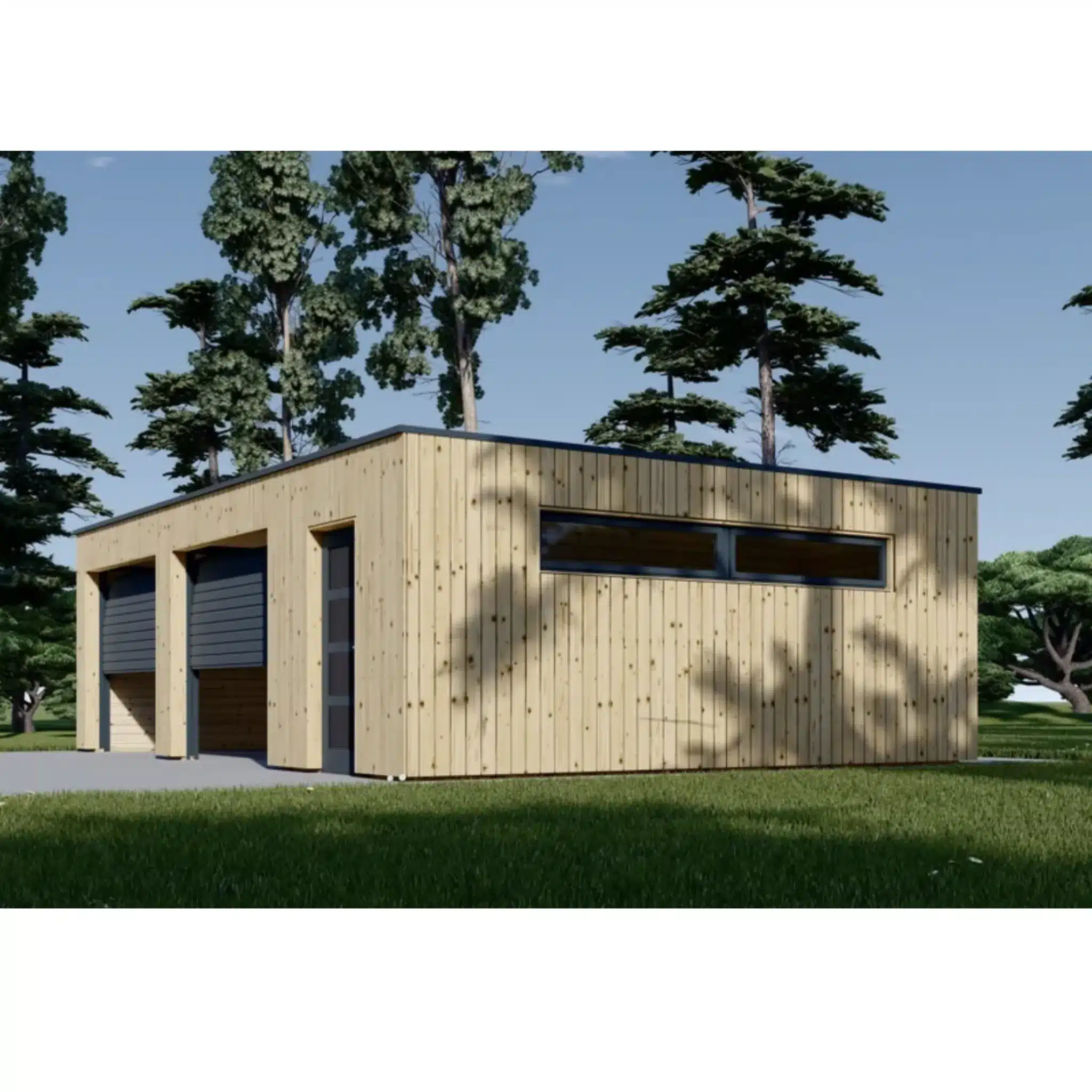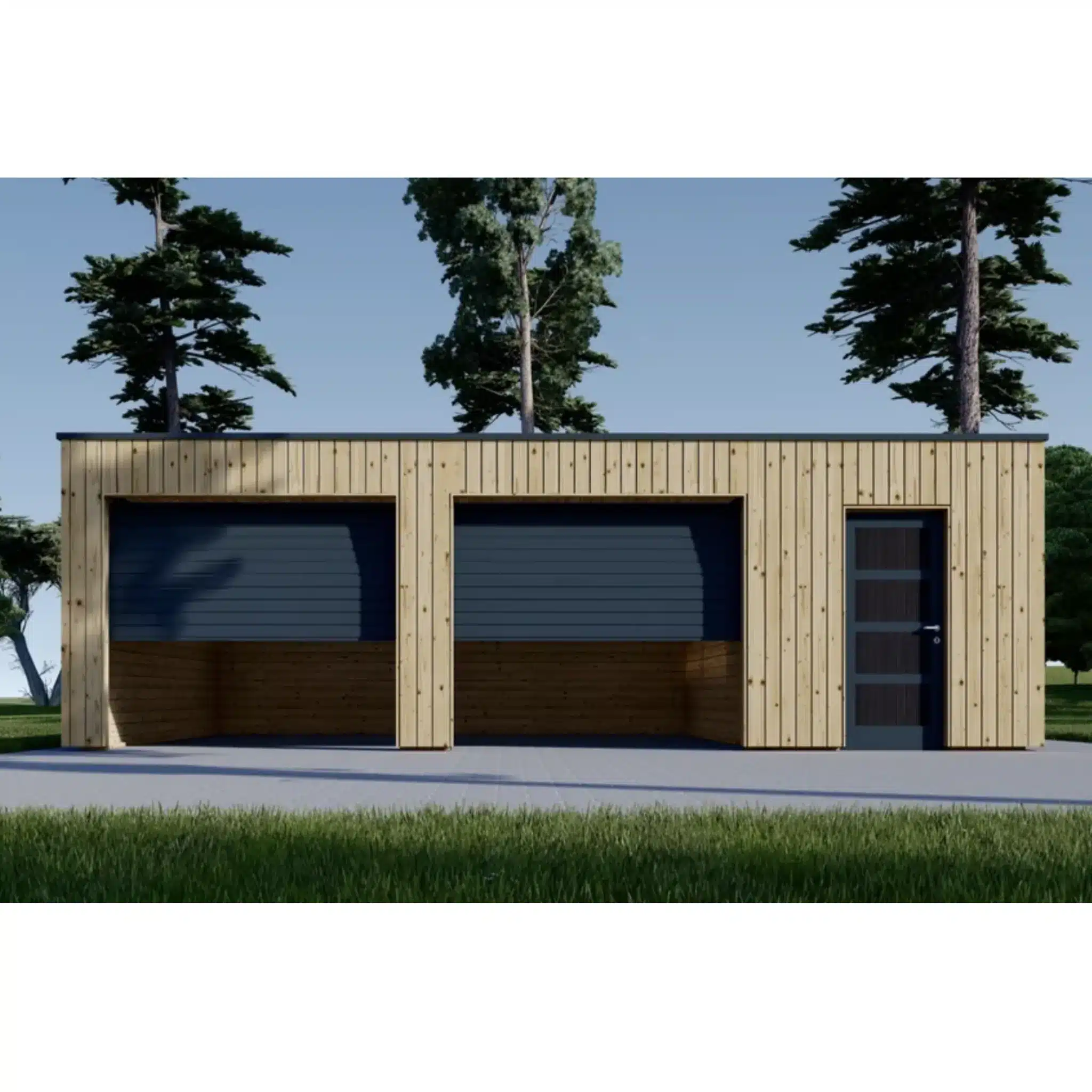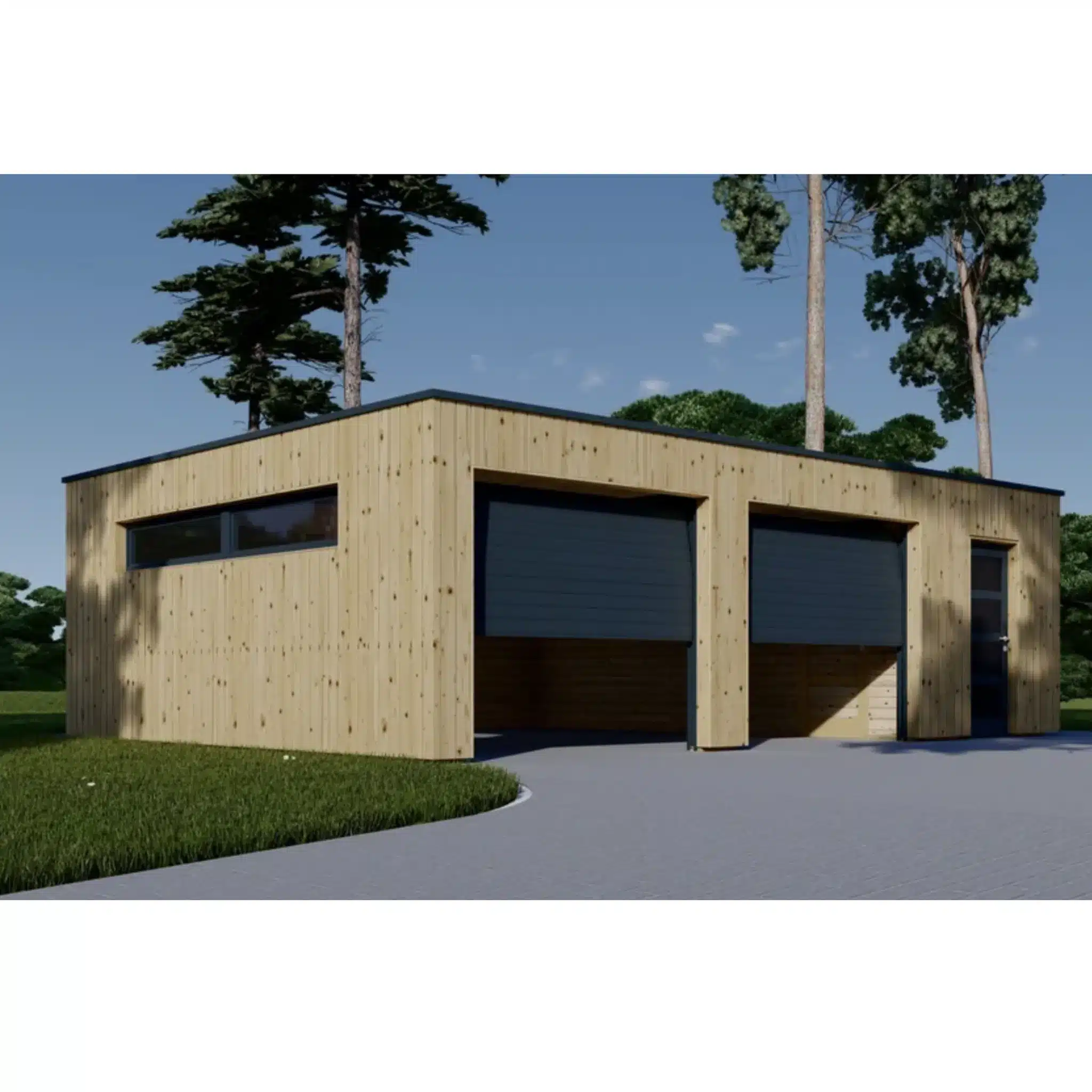 The double garage SILVIA F PLUS, crafted in wood, combines style with functionality, featuring a spacious storage shed. Organize tools and essentials in the additional space while securely parking your vehicles in the 32 m² garage. This compact, eco-friendly model is designed for durability, offering a wise, long-term investment.
