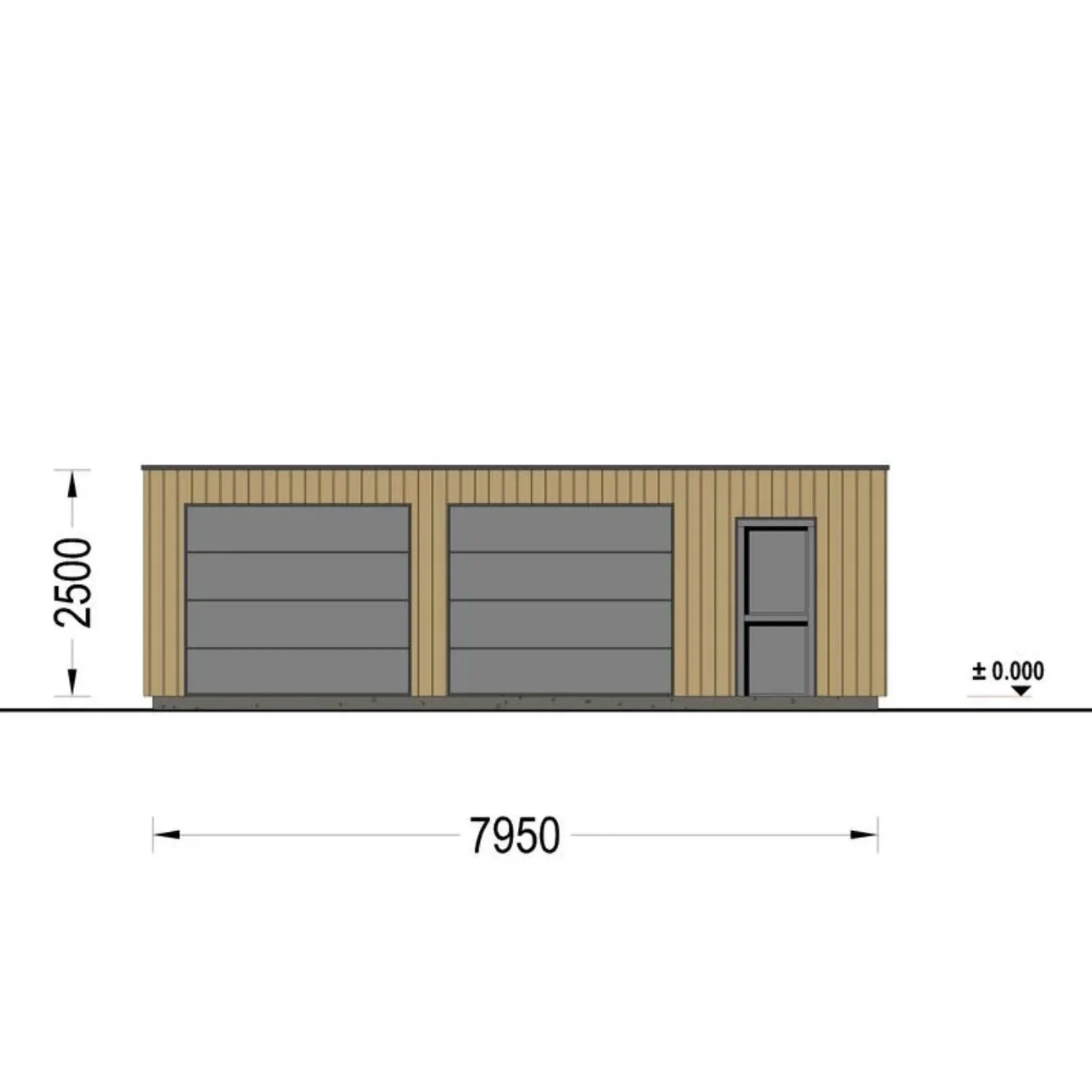 Double garage with shed SILVIA DUO F PLUS (34 mm + wooden cladding), 8×6 m, 48 m²