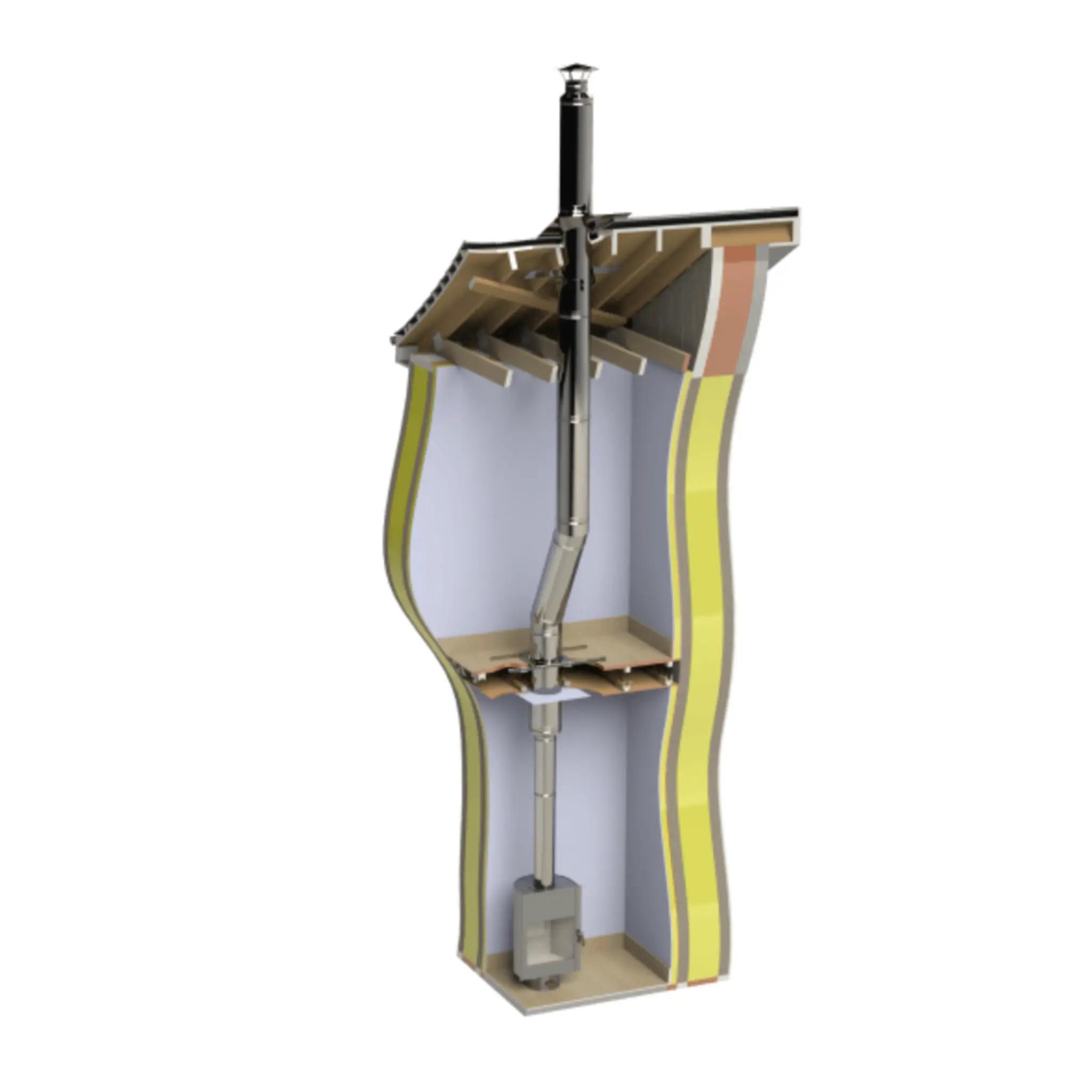 Discover the efficiency and safety of our double-wall chimney system, designed for natural draught exhaust of combustion products. Ensure proper clearance to combustible materials based on chimney size and regulations for optimal performance and peace of mind.