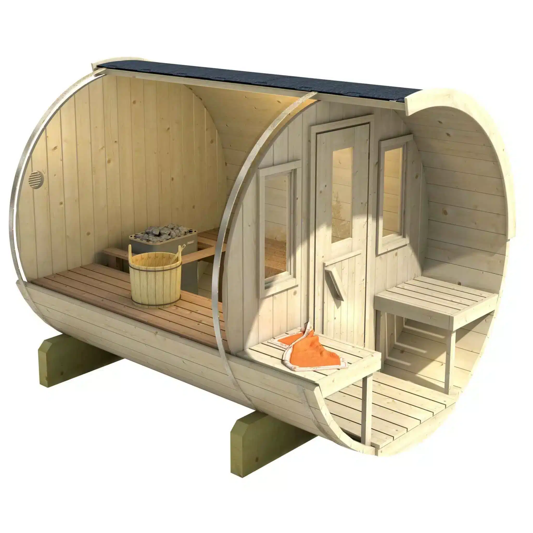 • Efficient heat distribution: The barrel sauna design ensures even heat and a pleasant sauna experience.
