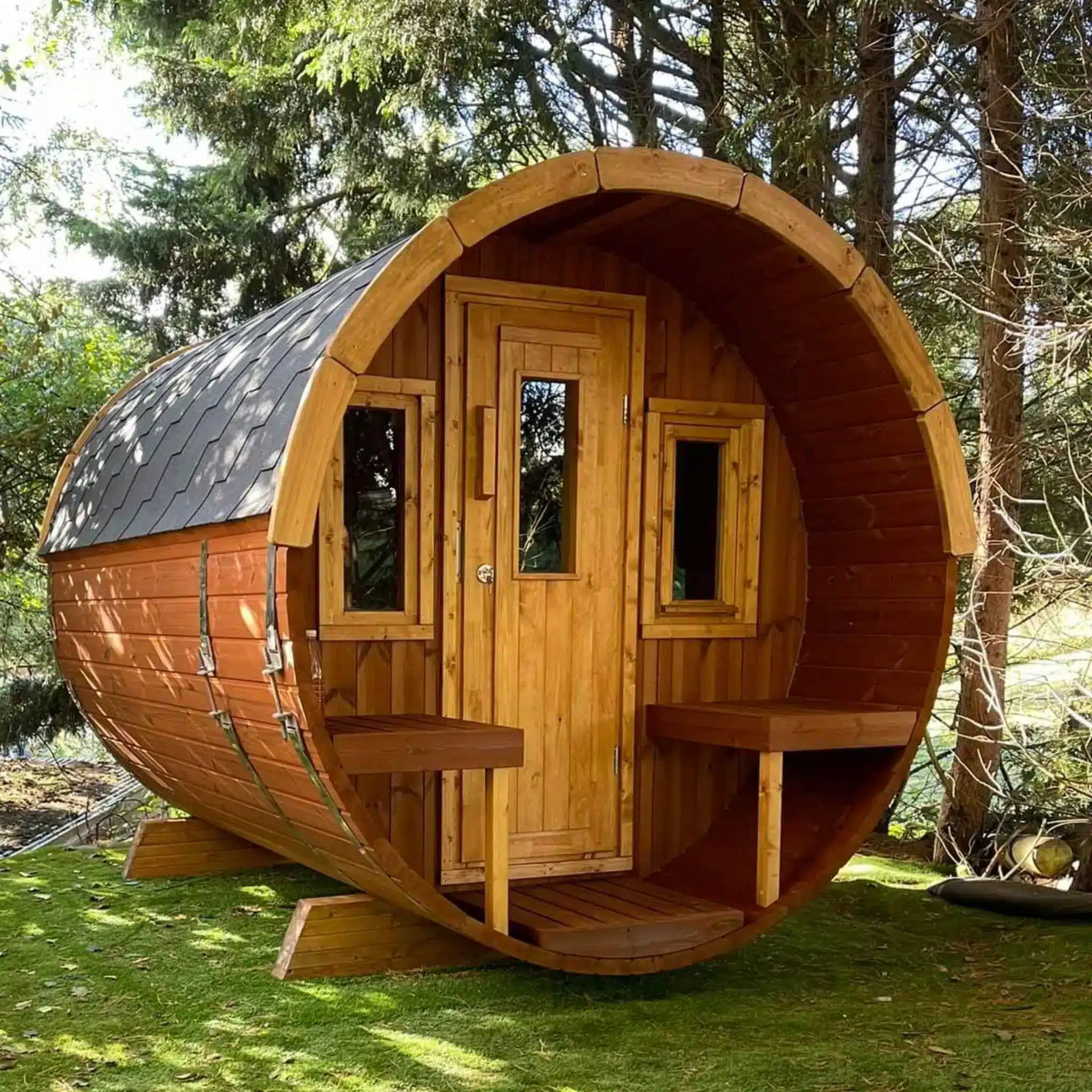 Ehala 330 barrel sauna – elegance and comfort for six people.