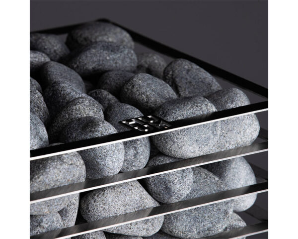 The heater’s body is designed to maximize stone exposure and deliver the most intense vaporization possible. This means that even a small amount of water poured onto the stones creates a rich, full steam without excessive heat or dryness. The open stone surface also provides a visually appealing effect—the glow of the hot stones inside the heater adds a calming and cozy atmosphere to the steam room.