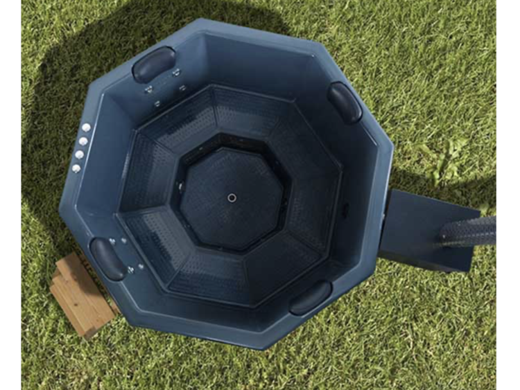 This octagonal hot tub with jets combines the best European quality standards with the latest technology. This model can be comfortably used by 6 people at the same time. The hot tub with bubble jets is made of environmentally friendly fiberglass, which is durable and airtight. Thermowood cladding does not require any additional chemical treatment. The stove is installed outside, which makes bathing in the hot tub absolutely safe and provides some extra space for swimming.