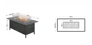 Tables run on LPG gas, using around 0.45 – 0.87 kg of gas per hour. They fit a 10 kg tank, but for the best and safest use, a 7.5 kg LPG tank is suggested. On a full 10kg tank, they’ll burn for about 12-22 hours.