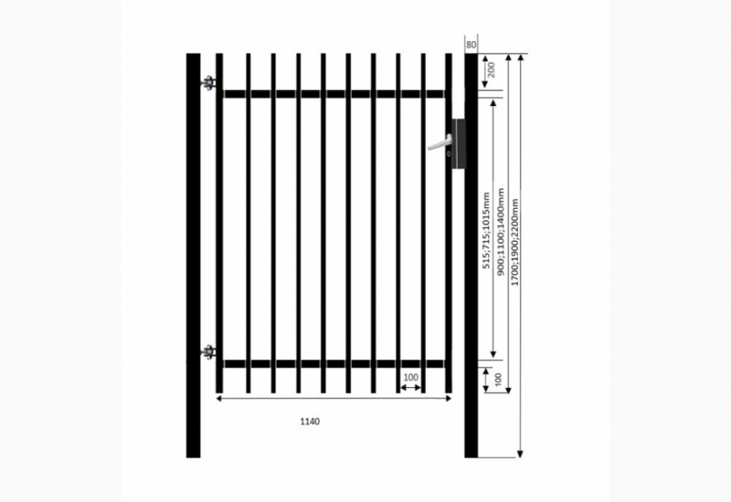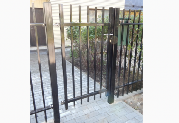 Foot gate for the toe rail with a width of 1140 mm. The surface is galvanized and painted with puber paint (black).