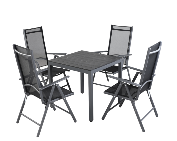 The 5-piece garden furniture set consists of 4 chairs and 1 table.