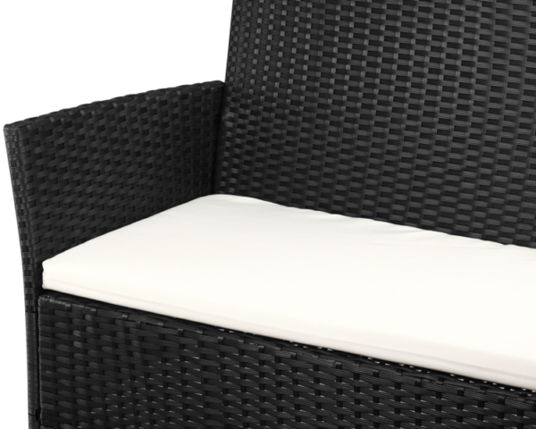 The furniture is weatherproof. The seat cushions are removable and can be washed at a low temperature. Waterproof fabric 160g/m2 polyester.