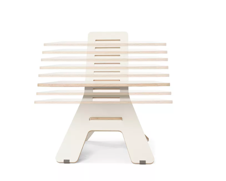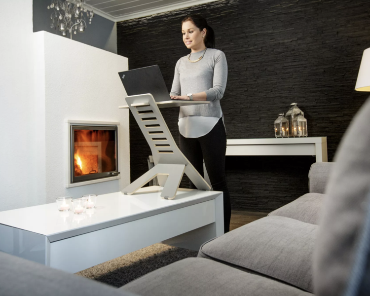 Allows you to work standing when there is no adjustable table. Developed for the laptop user to reduce sitting. It is suitable for remote work. Adjustable in 8 heights. The product is made entirely in Finland.