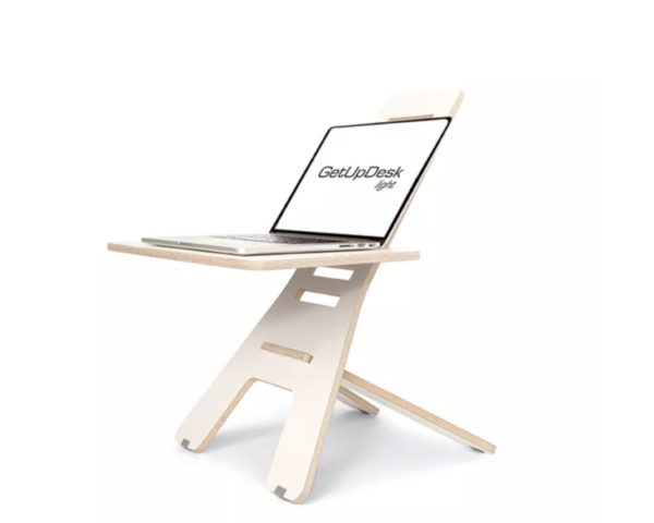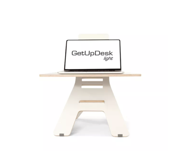 GetUpDesk Light is a portable and adjustable laptop desk. It allows you to work standing when there is no height-adjustable table. GetUpDesk light has been developed for the laptop user to reduce sitting and allow for variability in the working position.
