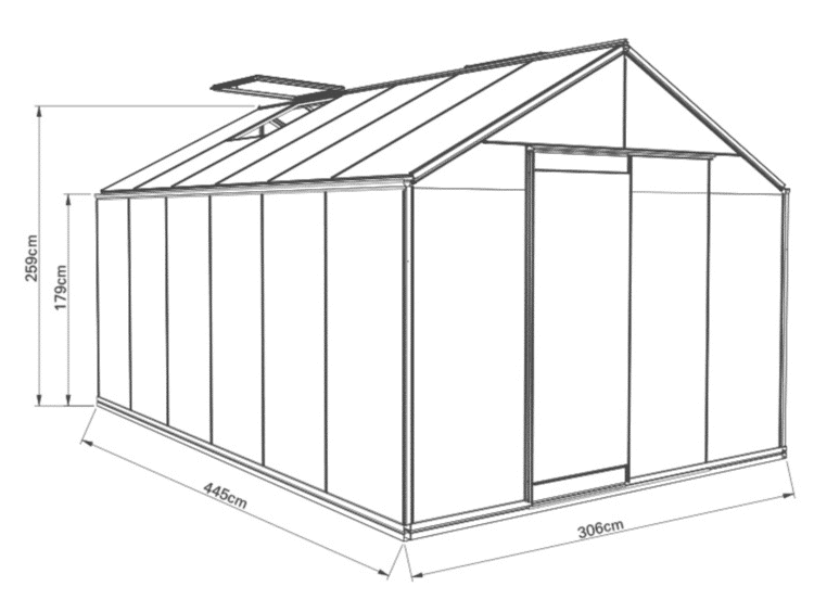 Note! The greenhouse has one sliding door, an additional door can be purchased as an optional accessory.