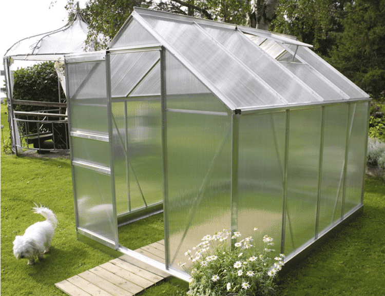 An affordable and long-lasting greenhouse with an aluminum frame.