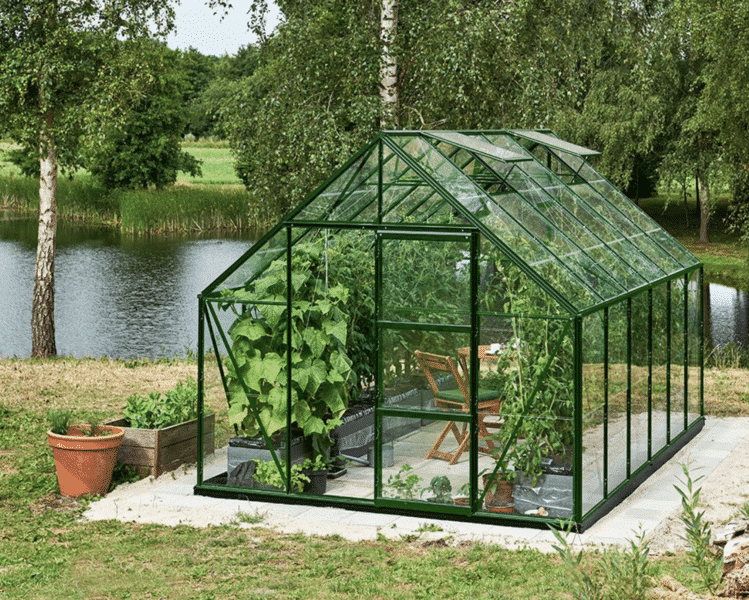 The Universal model is an option for you if you need a slightly larger greenhouse at an affordable price. The Halls Universal model features a green-painted aluminum frame and glass as the covering material. Standard equipment includes a sliding door, two roof vents, and guttering. Although the greenhouse is priced affordably, quality has certainly not been compromised. The aluminum frame is durable and the structure is reinforced with diagonal braces. Includes clear Finnish installation instructions.