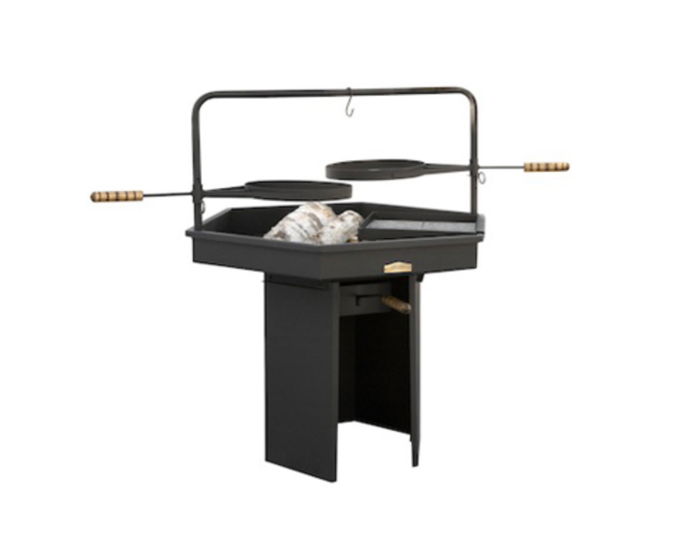 The fire pit is made of 2 mm sheet steel (4mm for the ash trey) and finished with high temperature and heat resistant paint.