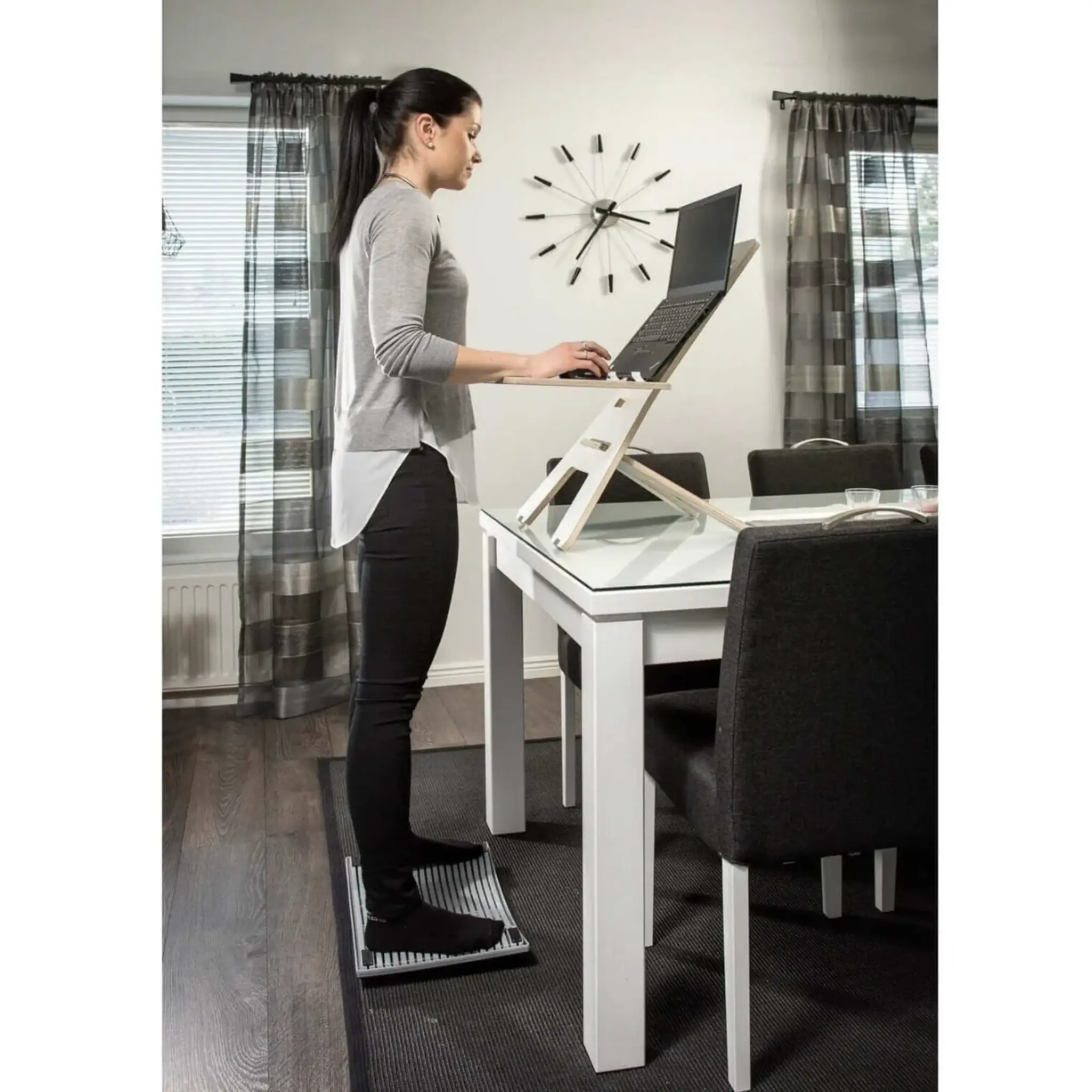 The Gymba activation board is designed to help you stand properly. It is easy to use, just put the board under your feet. The board will help you balance your position and adapt to your weight. Place the Gymba activation board in your standing workstation under your feet and work normally. The board will help you stand properly and not strain your legs or back as much. If possible, stand half of your time working on the Gymba board. Because of Gymba, your pain goes away, your posture improves, deep muscles get automatic movement and the whole body’s state improves. The effects will be noticeable after just a few days of use. This is evidenced by clinical trials and extensive testing.