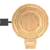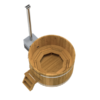 Wood-fired hot tub with an inside or an outside heater is a classic and traditional model made from natural wood. It is nearly one meter in-depth and has a comfortable bench for sitting. The bench exactly fits the shape of wooden hot tub, so it is safe and there aren’t any gaps between the wall profile and seats. You can choose any of five different wooden hot tub sizes depending on the number of people. Each wooden tub is handmade and complemented with a woodfired heater having a top wood charge system. The inside heater is separated from the bathing area by the wooden barrier protecting both the heater and people. The biggest Wooden Hot Tub with an Inside Heater can accommodate up to 12 people!
