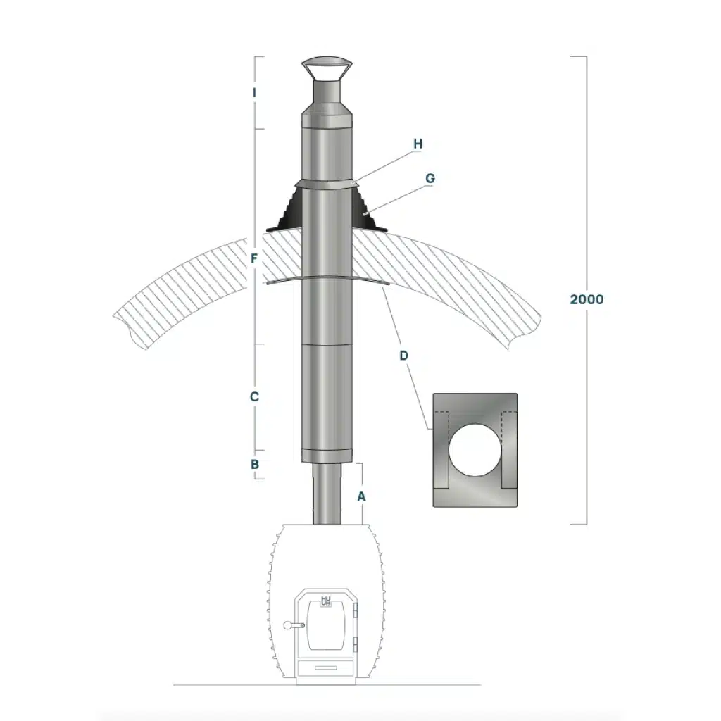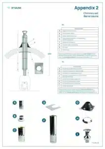 This barrel chimney set is designed to extend straight up through the ceiling and is designed for use with HUUM wood-fired sauna stoves inside Barrel saunas.