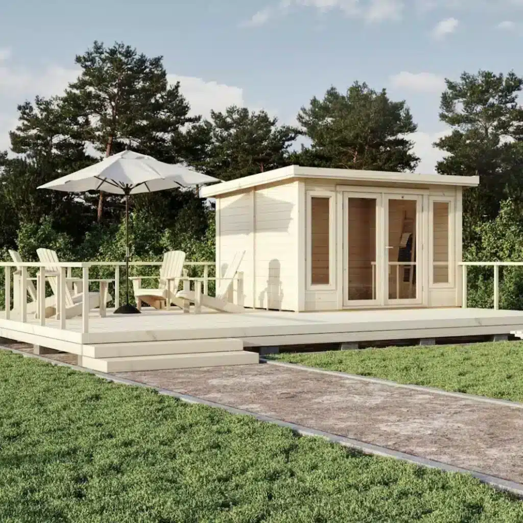 This chimney set is designed to extend straight up through the ceiling and is compatable with HUUM's wood-fired sauna stoves.