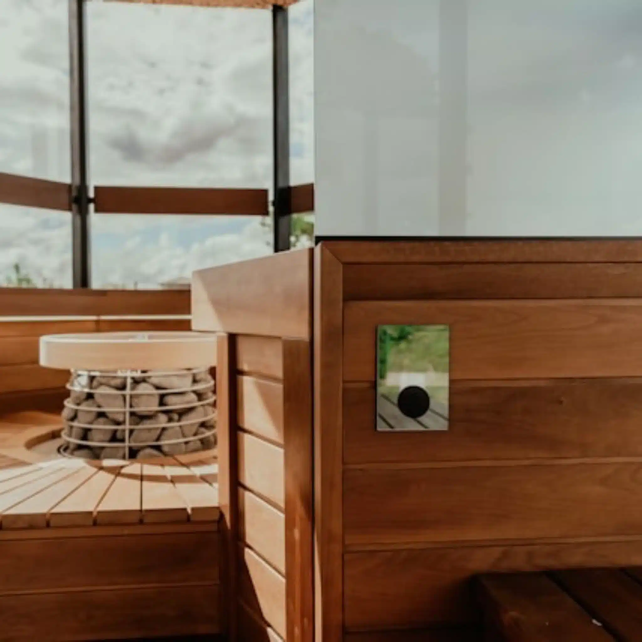 The HUUM UKU GLASS Mirror control panel is a perfect blend of functionality and aesthetics. Its reflective mirror surface enhances the visual appeal of your sauna while offering easy and intuitive control. Compatible with HUUM’s WiFi or Local main module, this panel makes sauna heating and features like lighting and ventilation accessible and stylish. Transform your sauna with the sleek and modern HUUM UKU GLASS Mirror control panel.