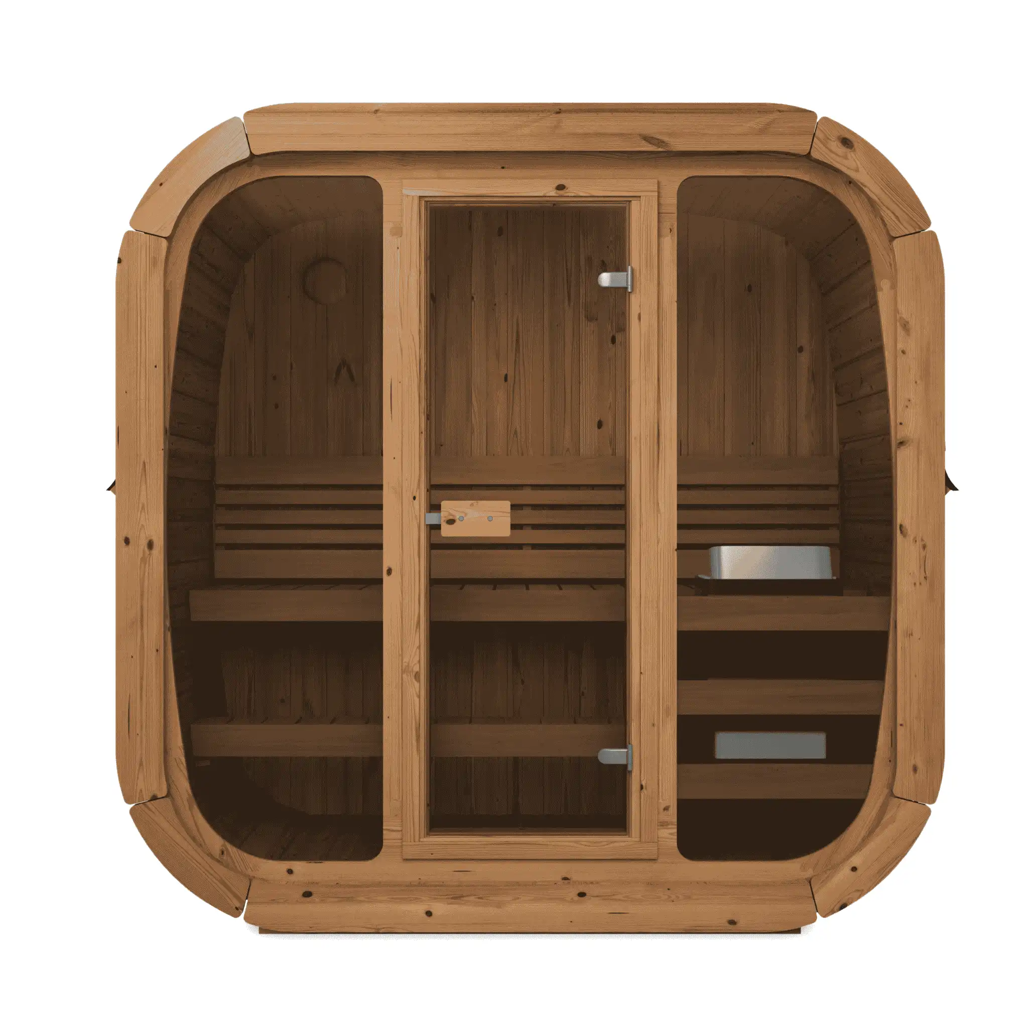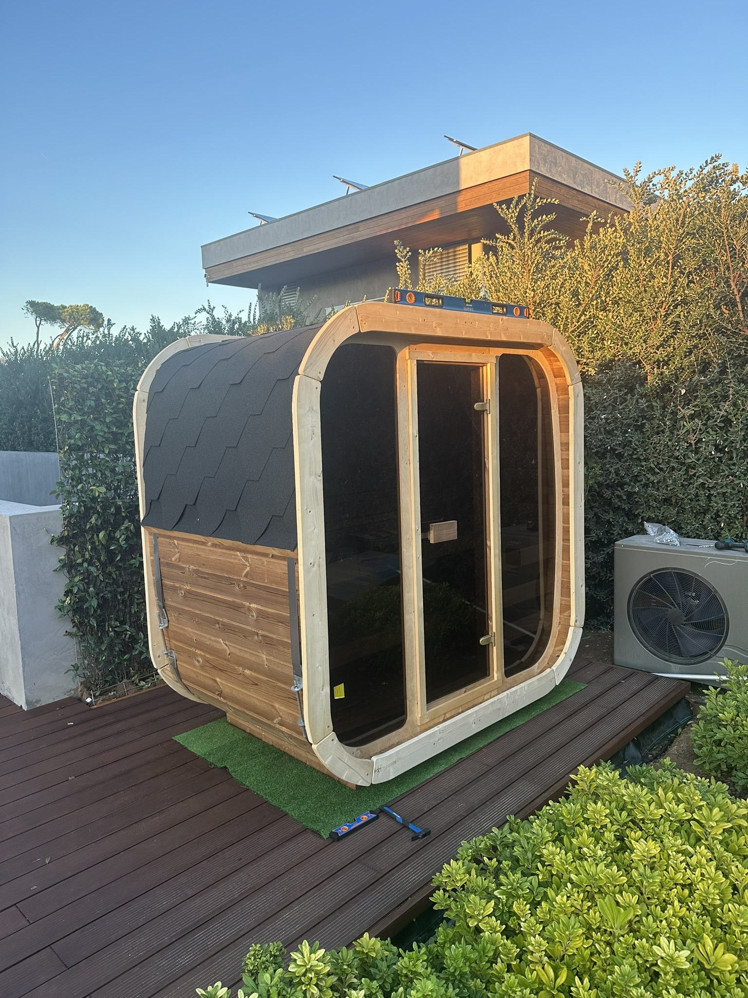 Compact and Space-Saving Design – With external dimensions of Ø2000 mm in diameter and a total height of 2100 mm, the Icon Sauna 125 is designed to fit into smaller garden areas without requiring expensive groundwork. Despite its compact size, it comfortably fits 3 people, making it ideal for couples or small families.