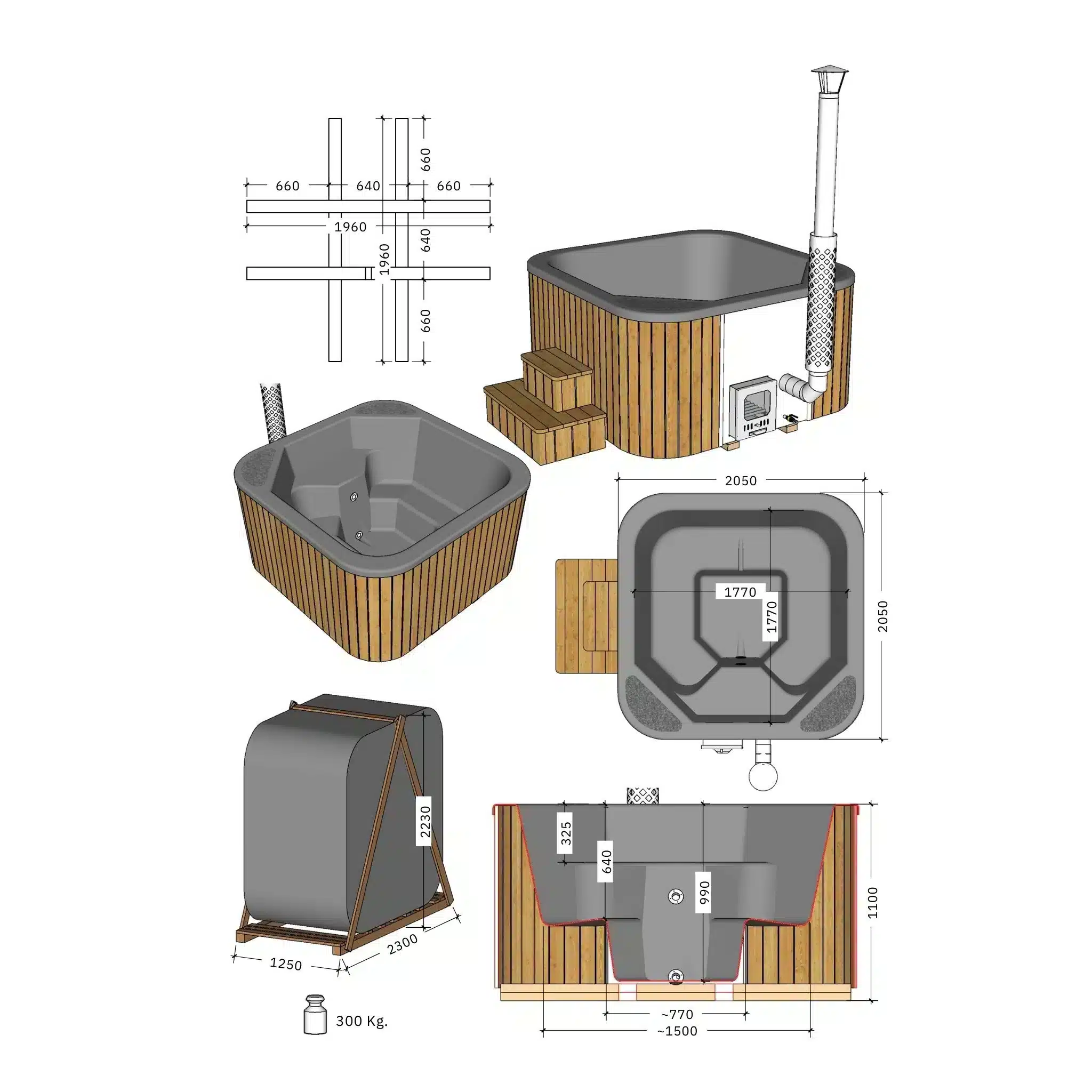 Powered by a 304-grade stainless steel heater (30 kW), the water heats up to a cozy 38°C in just 2-3 hours, ensuring your perfect soak even on the chilliest evenings. The 2-meter chimney with a heat shield and cap ensures safe and hassle-free operation, while the included rectangular thermowood steps provide easy and stylish access.