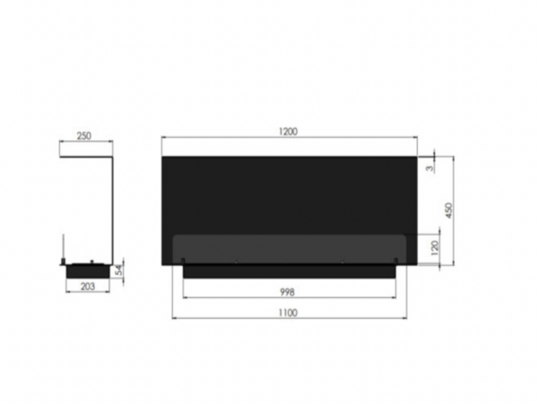 INSIDE C1200 VERS2. model is a fireplace prepared for assembling in a prepared recess. Its structure allows the assembly in the wall as due to bent folds, it is possible to cover the irregularities of the opening cut out in the wall. Moreover, the frame prepared in such a way makes up the frame for the fire which may be watched from three sides. A simple and delicate structure will work out in every interior and moreover, it makes up a perfect background for the warmth and comfort of your home.