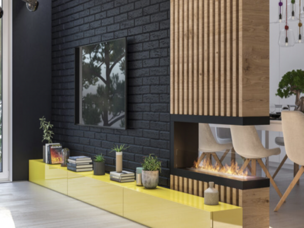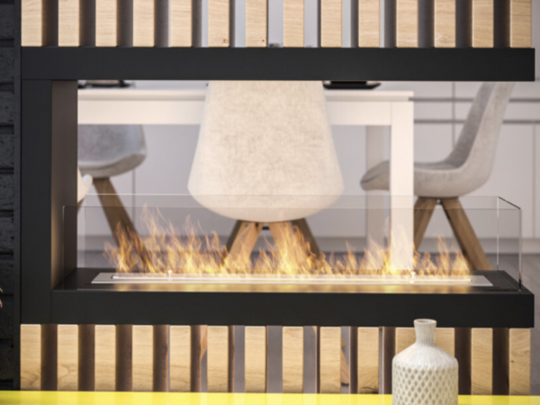 The fireplace frame also has a built-in insulation which allows for its safe assembly in, e.g. MDF or gypsum plasterboard. The fireplace may be a beautiful and effective connector between the two rooms.