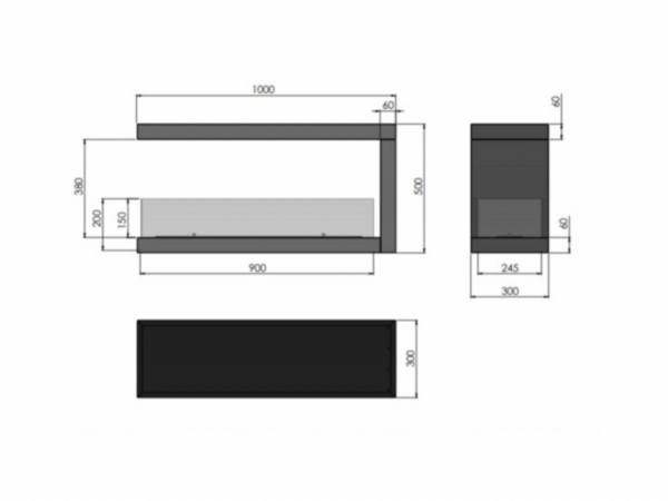 INSIDE U 1000.2 model is a fireplace prepared for assembling in a prepared recess. It is the most developed version of all models available for building-up. The frame of the fireplace is equipped with a bleeding system that prevents pressure formation under the burner in the event of fuel overflow. In the frame there are also 3 panes which are slid into special rails what allows for hiding all fixing.