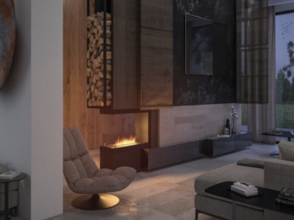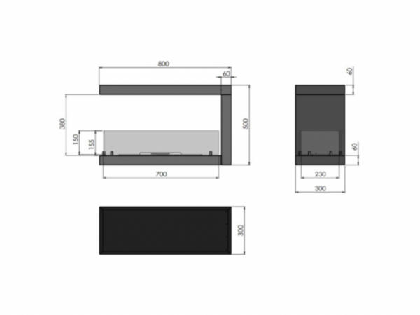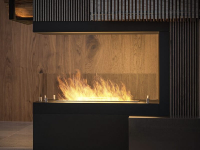 INFIRE INSIDE U800 is a fireplace prepared for installation in a prepared niche. Its construction makes it easy to install in the wall, as the bent overlaps make it possible to cover any imperfections of the opening cut in the wall. This form creates a frame for the fire, which can be viewed from three sides.