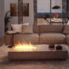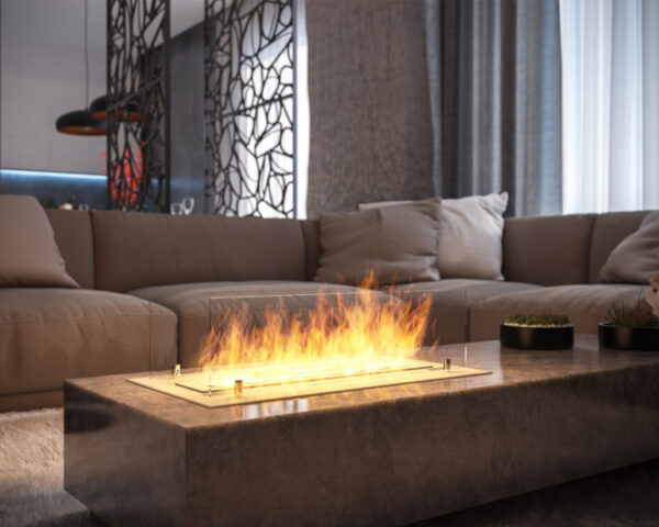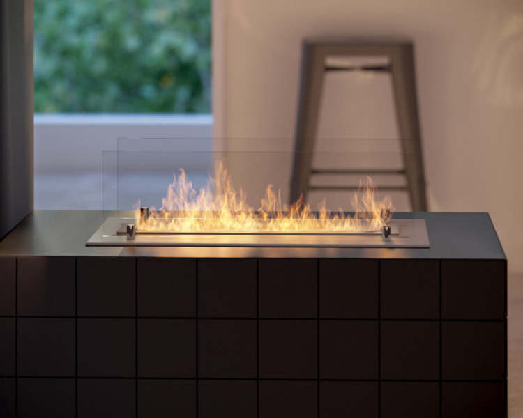 In addition, the casing chamber under the burner is designed to compensate for the pressure that could be created by a possible overflow of fuel. This system ensures the safe use of the fireplace. Thanks to these solutions, it is possible to incorporate the fire even into furniture panels (except for foiled panels). High-quality stainless steel ensures quality and durability, while the ground surface and the beveled edge provide a beautiful finish.