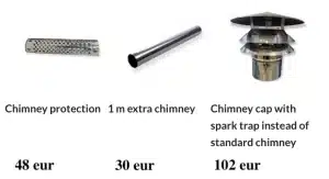 Standard internal heater for hot tub, made of stainless steel, the oven has 3 cross parts for circulation. Two chimney pipes with roof. This is suitable for hot tubs with a diameter of 1.5 m and 1.6 m.