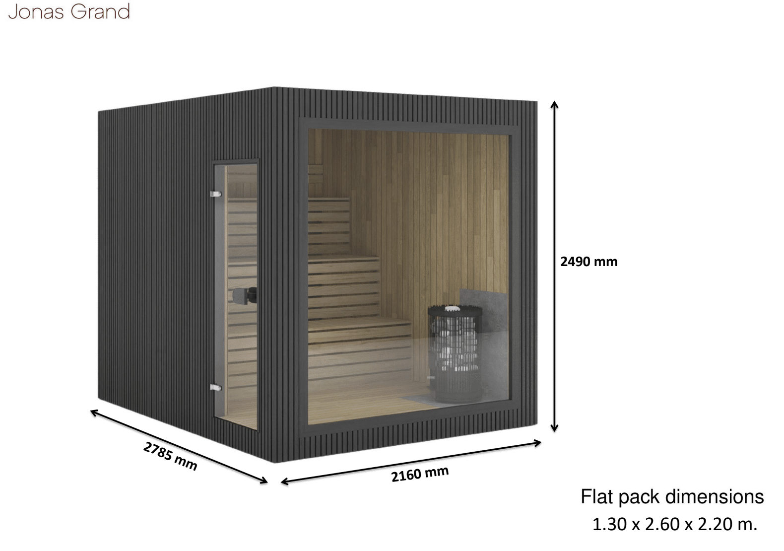 The largest in the Jonas line, built to accommodate up to six people comfortably. With its spacious interior, modern design, and flexible door placement on both sides, Jonas Grand is perfect for families or wellness seekers who want more room to stretch, relax, and share the experience.