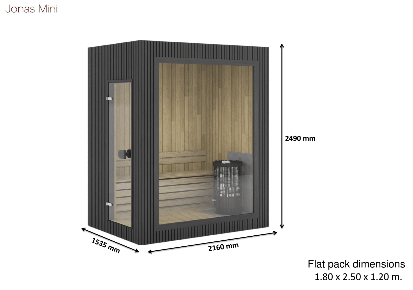 Jonas Mini is a compact, modern outdoor sauna. Crafted from natural wood and featuring a sleek, weather-resistant finish, it brings a refined sense of wellness to even the Classicest spaces.
