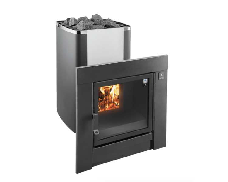 Kastor Karhu 30 T fireplace heater is suitable for a sauna with a volume of 20-30 m³. A fireplace heater, or tunnel heater, is a combination of a wood heater and a fireplace, where the heater is located in a sauna and a fireplace on the other side of the wall. So, you can first enjoy the steam on the sauna side and continue the atmosphere by the fireplace in the fireplace room, dressing room or living room. The fireplace located outside the sauna also heats the spaces outside the sauna and keeps the sauna clean when the debris coming from the firewood does not end up on the sauna floor. Kastor Karhu 30 T is a CE-marked heater. All Kastor Karhu heaters have adjustable legs, and the inside diameter of the flue is 115 mm.In addition to practicality, of course, the heater looks great. The beautiful lines of the heater are suitable for many tastes and sauna interiors. The careful design of the firebox and stone space makes the heater light without compromising on its excellent fire properties.