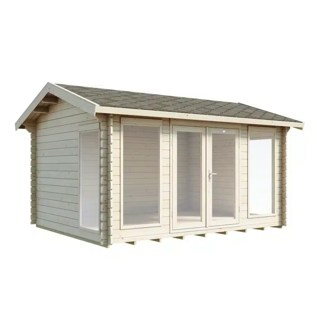 Upgrade your backyard with the Lillevilla Olos summer kitchen – a modern, 12m² glazed kitchen with stunning views, tempered safety glass windows, and durable 34mm log construction. Easy assembly with customizable accessories. Perfect for outdoor dining and entertaining. Order now!