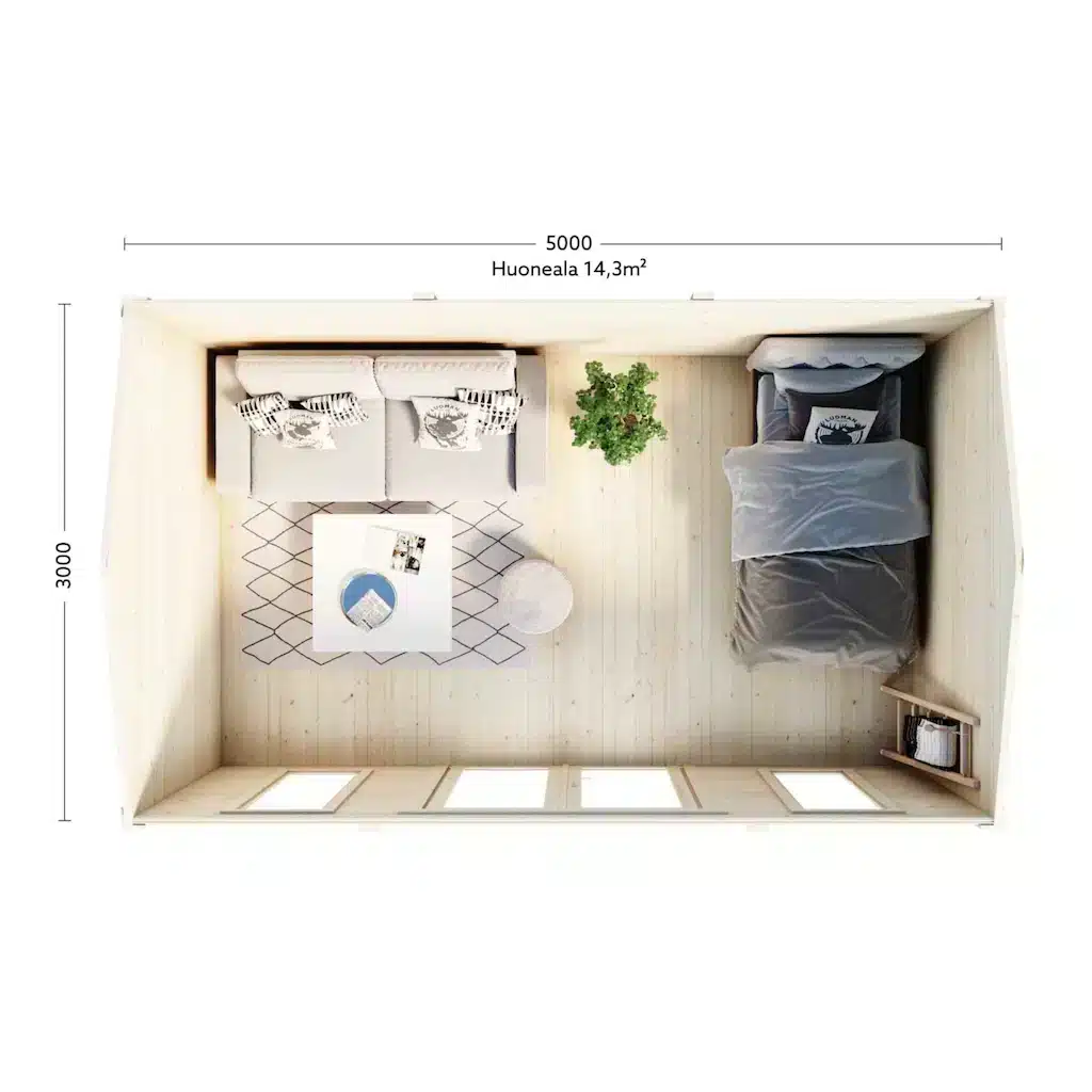 Lillevilla Pemu is a spacious and bright gable-roof building made of 44 mm thick logs. It’s the perfect place to enjoy summer days or create a cozy atmosphere on autumn evenings. Thanks to its large windows, this model is ideal as an artist’s studio or a summer kitchen.