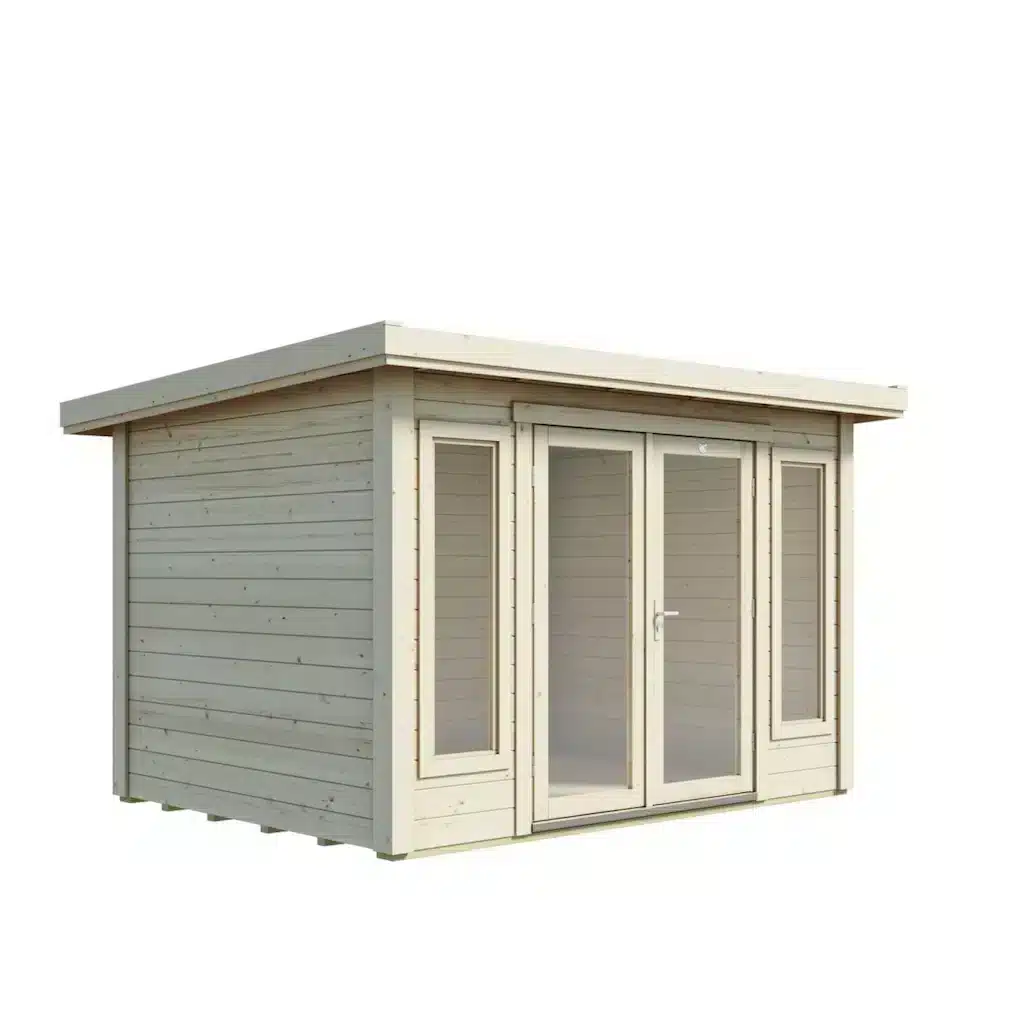 The Lillevilla Suovu guesthouse is a spacious and bright flat-roofed building made from 44 mm thick lightweight logs. It’s perfect for enjoying summer days or creating a cozy atmosphere on autumn evenings! Thanks to its large windows, this model is particularly suitable as a studio or even a summer kitchen.