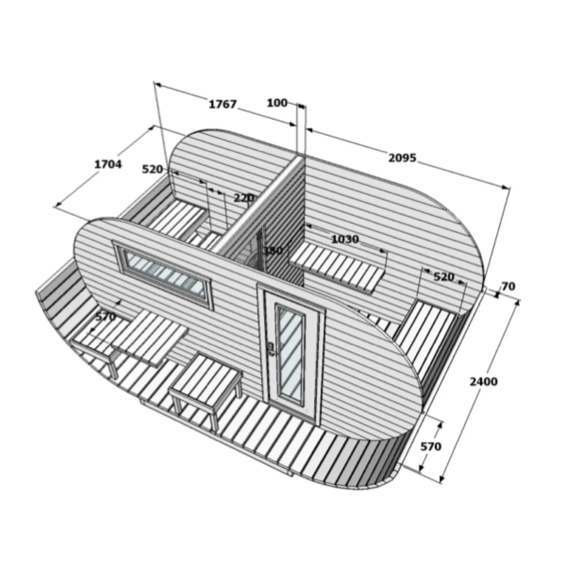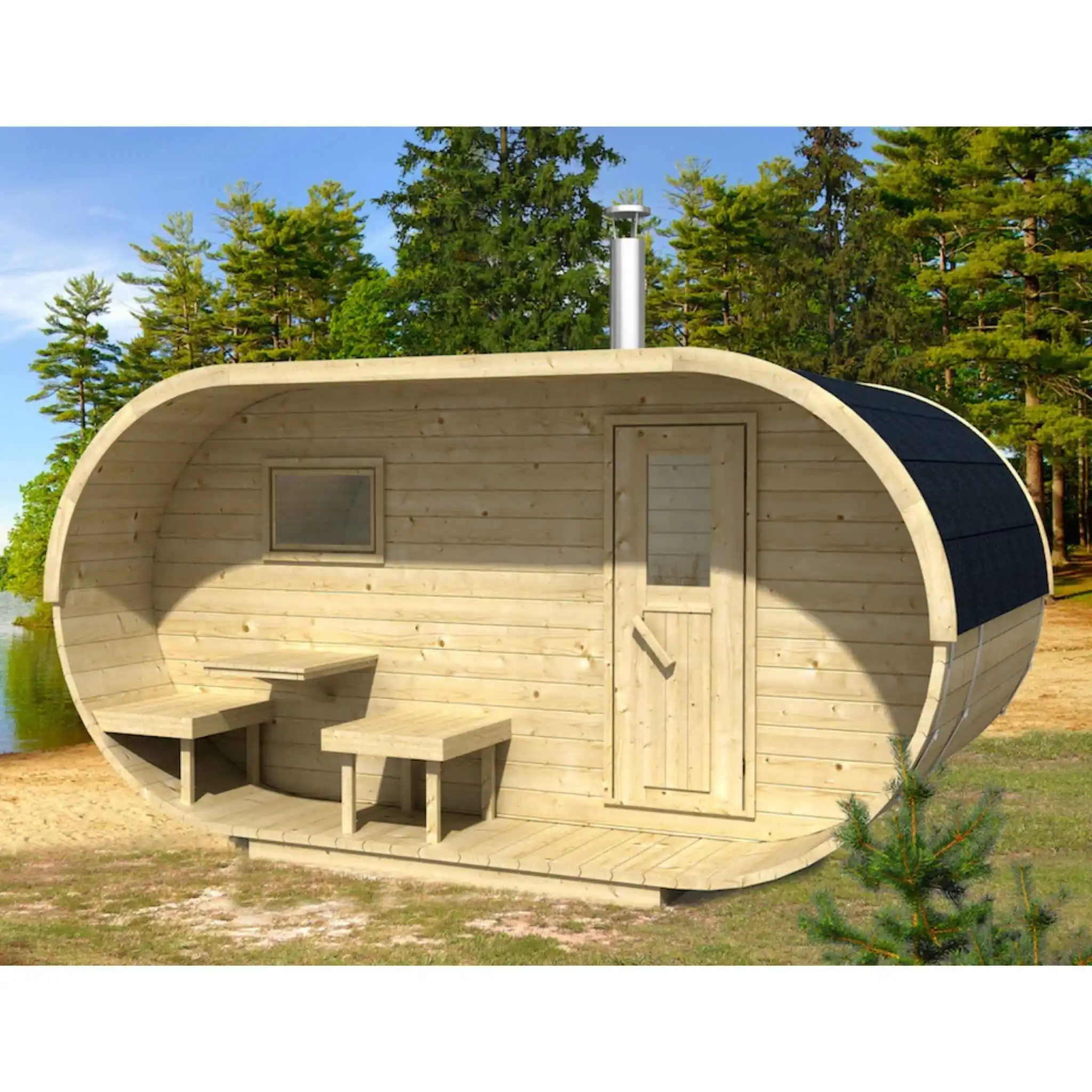 The Lumikki sauna is the perfect choice for anyone seeking a unique and practical outdoor sauna for their home or garden. Its elegant oval design and well-thought-out layout provide both functionality and comfort, creating a relaxing space that blends beautifully with any natural environment.